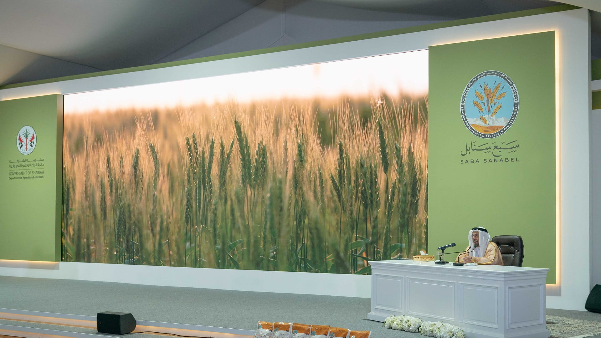 وكان صاحب السمو حاكم الشارقة قد أزاح الستار للإعلان عن هوية وشعار مؤسسة الشارقة للإنتاج الزراعي والحيواني "سبع سنابل"، وأذن سموه ببدء عملية الحصاد في مزرعة القمح من خلال قرع جرس الحصاد.