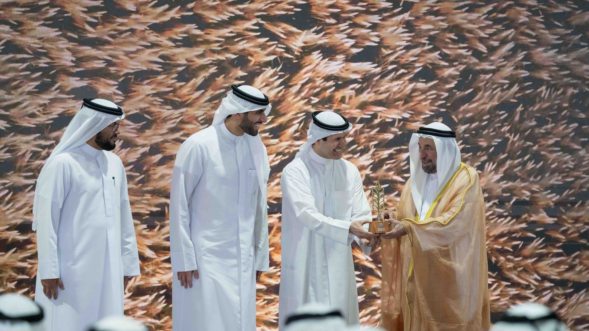 وشاهد سموه عرضاً مرئياً بعنوان "الجذور"، الذي يروي قصة العودة إلى الأرض، وأهمية المشروعات الحيوية والزراعية، خاصة القمح في ظل المتغيرات التي يشهدها العالم، والتي تؤثر في توافر الأمن الغذائي، ويبلور نجاح الشارقة في مشروع زراعة القمح بأيدٍ وطنية، والذي توج بحصاد "سبع سنابل"، إضافة إلى جهود الآباء والأجداد في تنمية الأراضي، مؤمنين بالله ومتسلحين بالثقة لتوفير مستقبل غذائي آمن للأجيال المقبلة.
