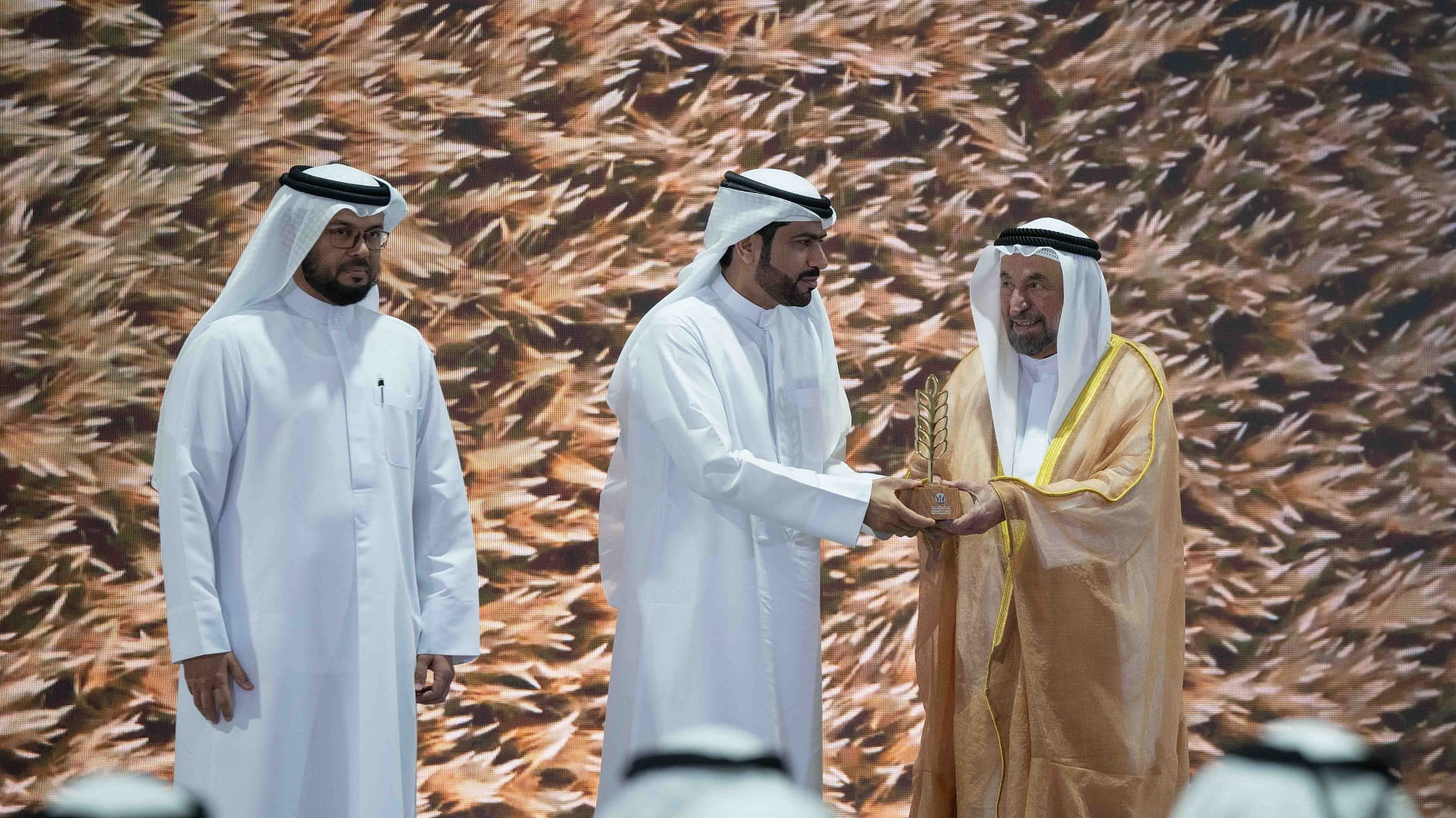 وتسلم صاحب السمو حاكم الشارقة هدية تذكارية من دائرة الزراعة والثروة الحيوانية، تمثلت في سنابل القمح التي بذرها سموه في المزرعة، شكلت شعار مؤسسة الشارقة للإنتاج الزراعي والحيواني.