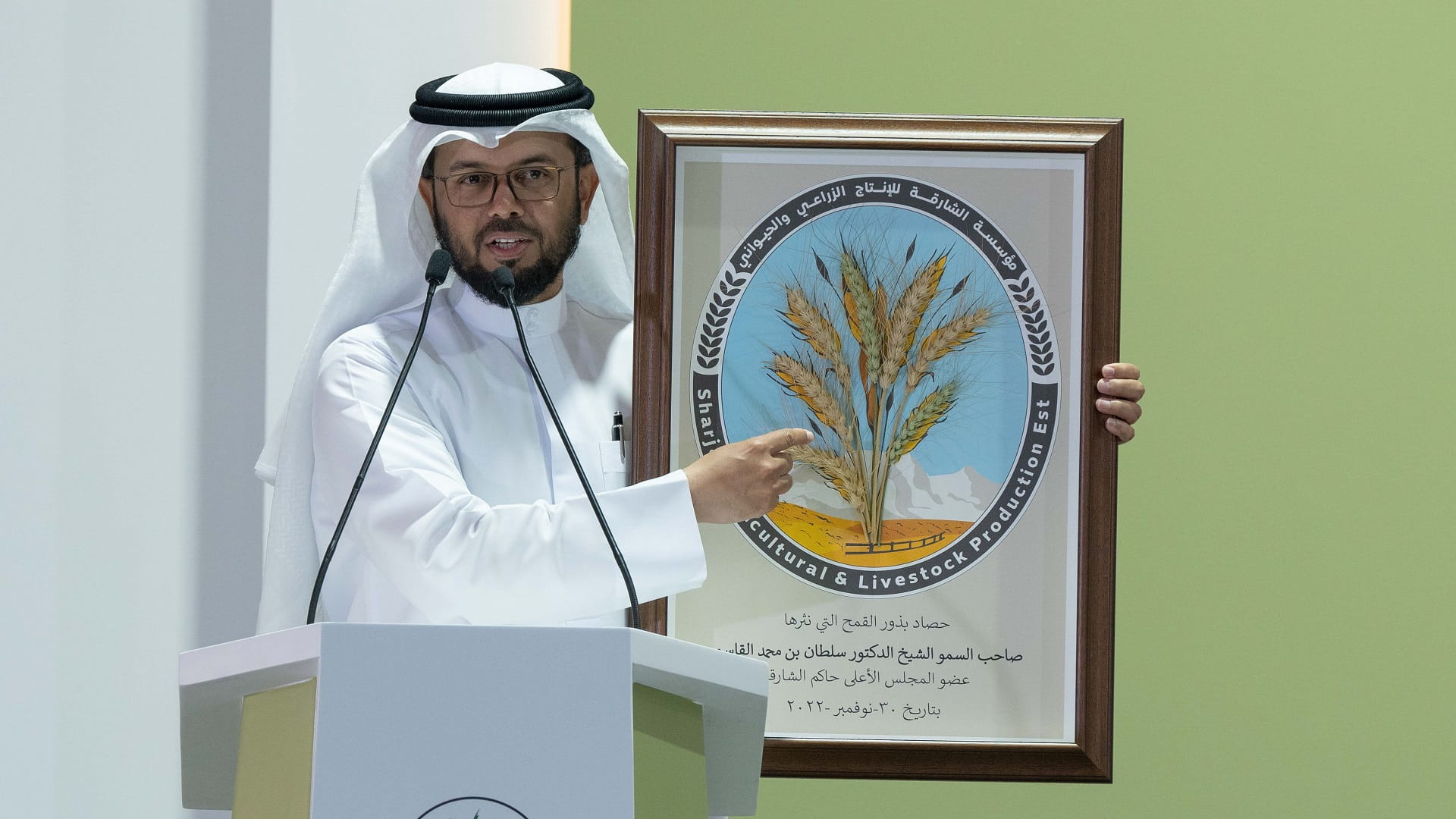 أكد صاحب السمو الشيخ الدكتور سلطان بن محمد القاسمي، عضو المجلس الأعلى حاكم الشارقة، نجاح مشروعات الغذاء المتنوعة التي اعتمدتها الإمارة في مناطقها المختلفة، واستمرار تطورها ورفدها عبر المراحل المقبلة، مما يجعلها متكاملة في جوانب الأمن الغذائي من المنتجات الزراعية والحيوانية، لتأمين احتياجات الإمارة من القمح والألبان وغيرها، مشيراً سموه إلى أن القمح المنتج في الشارقة من أجود الأنواع في العالم لاحتوائه على أعلى نسبة من البروتين، وخلوه من أية مواد كيميائية أو أسمدة وغيرها من المواد الضارة على صحة الإنسان.