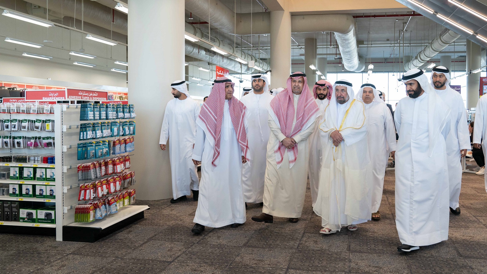 وبعد قص شريط الافتتاح، وإزاحة الستار عن اللوح التذكاري، تجول سموه في أرجاء المكتبة، مستمعاً إلى شرح من القائمين عليها حول محتوياتها وما تضمه من مختلف الإصدارات والأدوات والأجهزة المكتبية والمعرفية والتقنية، والتي توفر كافة المستلزمات التي تخدم القراء والطلبة والباحثين والأطفال وغيرهم.