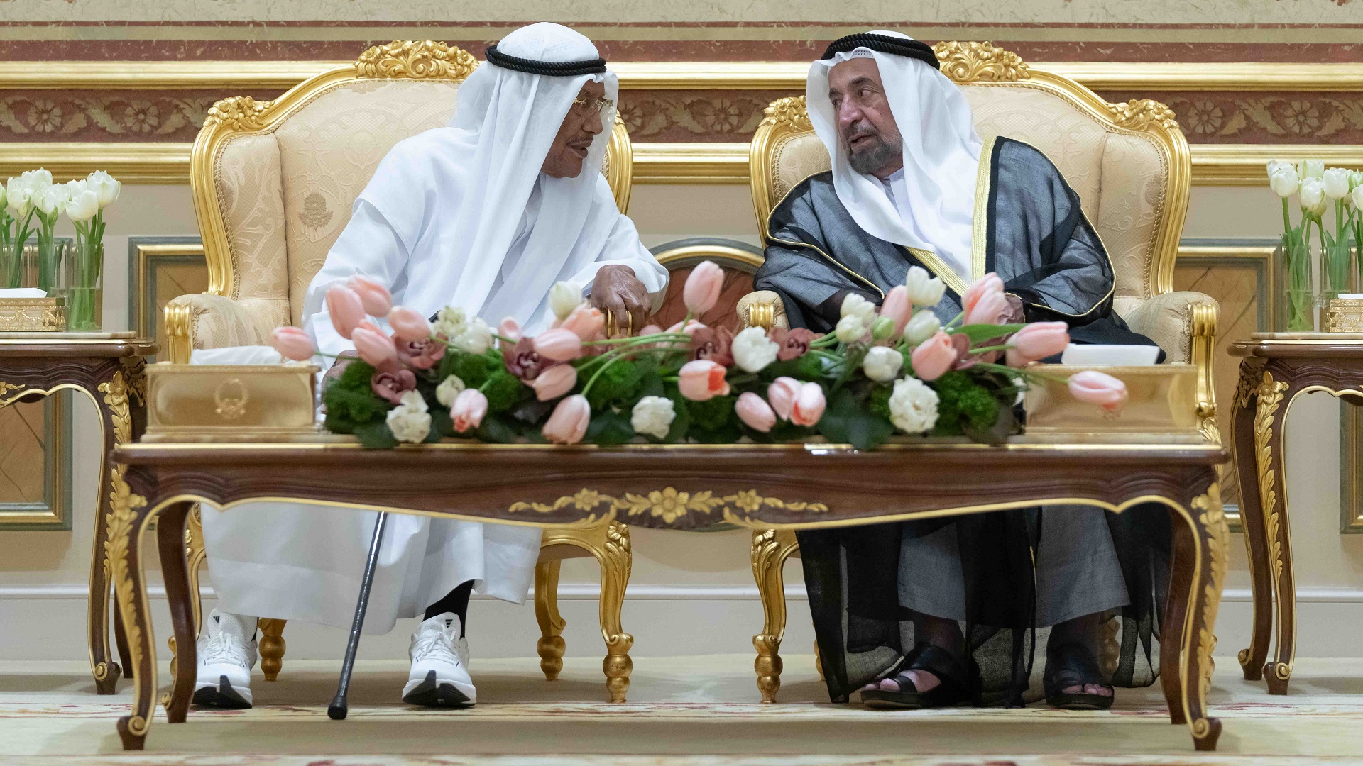 تقبل صاحب السمو الشيخ الدكتور سلطان بن محمد القاسمي عضو المجلس الأعلى حاكم الشارقة، بحضور سمو الشيخ سلطان بن محمد بن سلطان القاسمي ولي العهد نائب حاكم الشارقة، وسمو الشيخ عبد الله بن سالم بن سلطان القاسمي نائب حاكم الشارقة، وسمو الشيخ سلطان بن أحمد بن سلطان القاسمي نائب حاكم الشارقة، مساء اليوم الخميس، التهاني بحلول شهر رمضان المبارك، من سمو الشيخ عبد الله بن راشد المعلا نائب حاكم أم القيوين، وجموع المهنئين الذين قدموا إلى قصر البديع العامر.