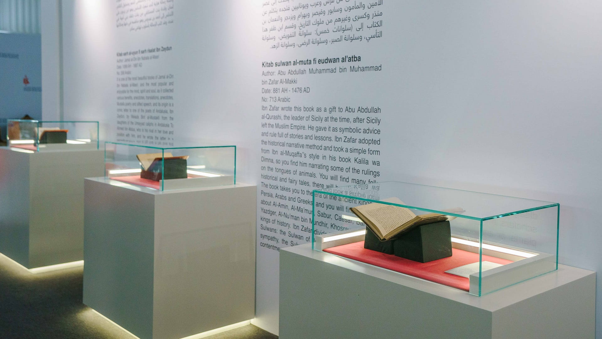 كما يستعرض مخطوطة رسالة في علم الظلال لمؤلفه محمد بن الرقام الأندلسي، ونسخة من القرآن الكريم (معروفة باسم مصحف مولاي زيدان)، وكتاب البرق اليماني في الفتح العثماني لمؤلفه قطب الدين محمد بن أحمد النهروالي المكي، وديوان شهاب الدين بن الخياط (ديوان بن الخياط) لمؤلفه أبي عبد الله أحمد بن محمد بن علي التغلبي المعروف بابن الخياط الدمشقي، وديوان شمس الدين الحنفي لمؤلفه أبي عبد الله محمد بن حسن بن علي الحنفي القرشي التيمي، وكتاب الجواهر المجموعة والنوادر المسموعة لمؤلفه محمد بن عبد الرحمن السخاوي شمس الدين.