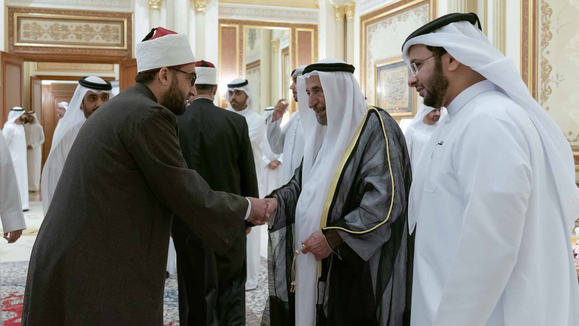 وتقبل سموه التهاني بهذه المناسبة الإسلامية من الشيخ محمد بن حمدان آل نهيان، ومن الشيوخ ومن معالي عبد الله بن طوق المري وزير الاقتصاد، ومعالي الدكتور عبد الرحمن بن عبد المنان العور وزير الموارد البشرية والتوطين، ومعالي عبد الله بن عواد النعيمي وزير العدل، ومن كبار مسؤولي الدولة وأعيانها ومن وفد أئمة وخطباء مساجد الشارقة ومن جموع المواطنين والمقيمين.