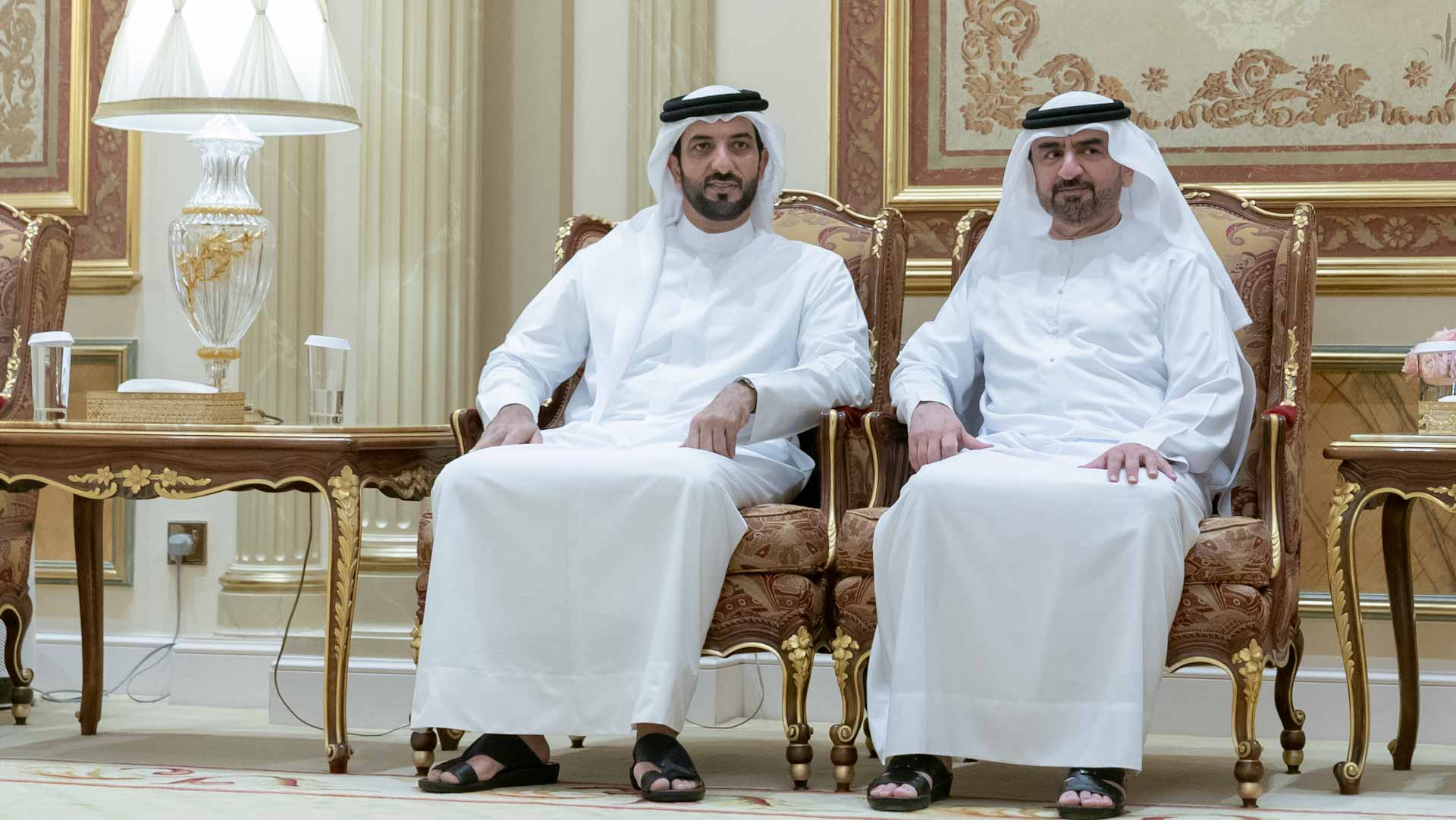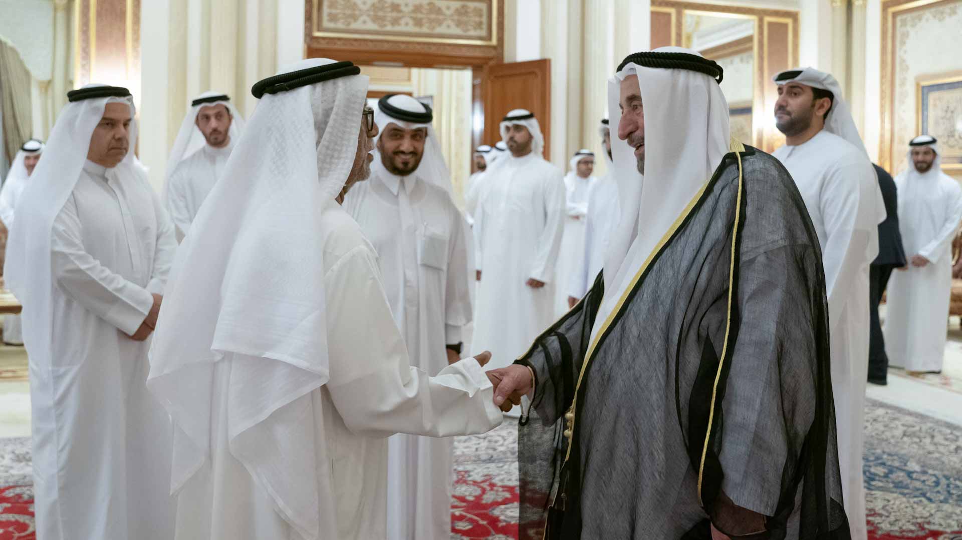حضر الاستقبال بجانب صاحب السمو حاكم الشارقة ،كل من: الشيخ فيصل بن خالد بن سلطان القاسمي، والشيخ محمد بن سعود القاسمي رئيس دائرة المالية المركزية، والشيخ خالد بن عبد الله القاسمي رئيس هيئة الشارقة للموانئ والجمارك والمناطق الحرة، والشيخ سالم بن عبد الرحمن القاسمي رئيس مكتب سمو الحاكم، والشيخ خالد بن عصام القاسمي رئيس دائرة الطيران المدني، والشيخ فاهم بن سلطان القاسمي رئيس دائرة العلاقات الحكومية، والشيخ محمد بن حميد القاسمي رئيس دائرة الإحصاء والتنمية المجتمعية، والشيخ صقر بن محمد القاسمي رئيس مجلس إدارة جمعية الشارقة الخيرية.