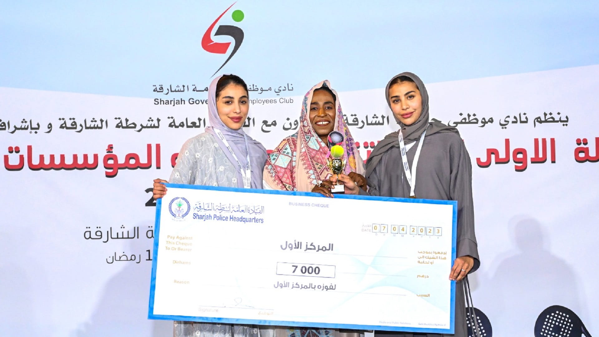 توجت العقيد منى سرور الشويهي نائب مدير إدارة المؤسسة العقابية والاصلاحية بشرطة الشارقة، مساء أمس الجمعة، الفائزات في بطولة الشرطة الأولى لبادل التنس لموظفات حكومة الشارقة 2023، التي أقيمت في ملاعب البادل بنادي شرطة الشارقة.