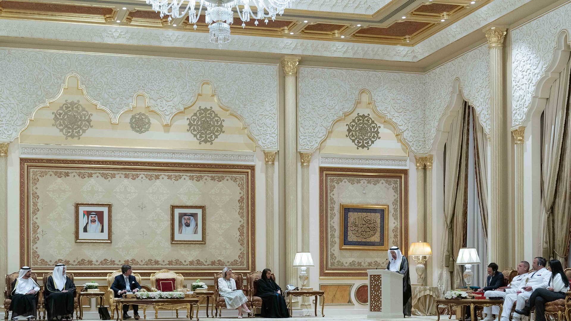 وألقى نيكولاس نيمتشيناو سفير فرنسا لدى الدولة، كلمة حيا فيها جهود صاحب السمو حاكم الشارقة، في مختلف المجالات الإنسانية والتعليمية والثقافية والتاريخية والتعايش السلمي والبيئة والمناخ، وغيرها مما جعل فرنسا تفتخر بمنحه هذا الوسام الرفيع كأحد الشخصيات الرفيعة على مستوى العالم.