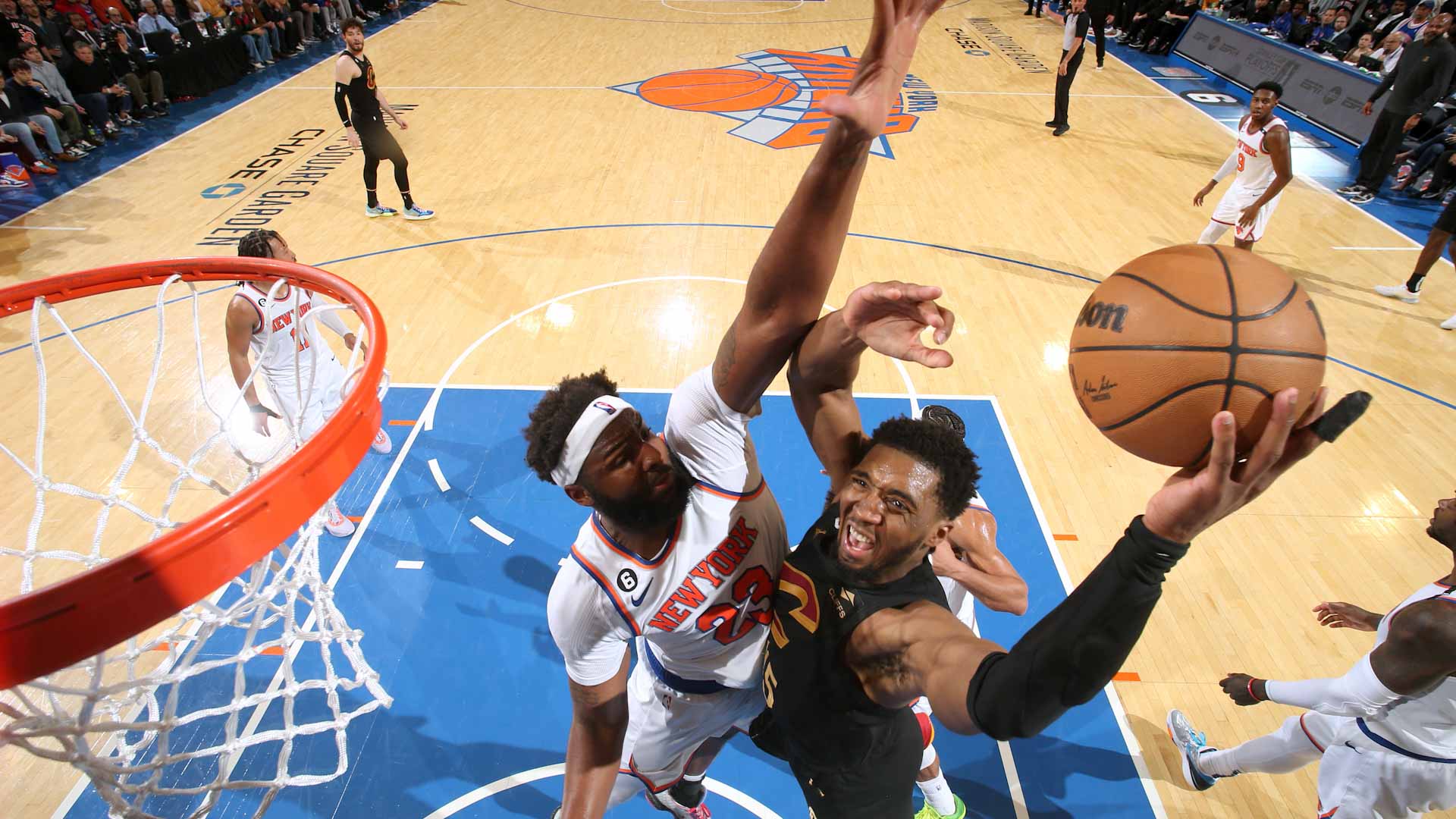 وسجل جالن برونسون 29 نقطة، وأضاف آر.جيه باريت 26 نقطة لنيويورك نيكس، الذي تقدم بذلك على كافاليرز 3 / 1 .