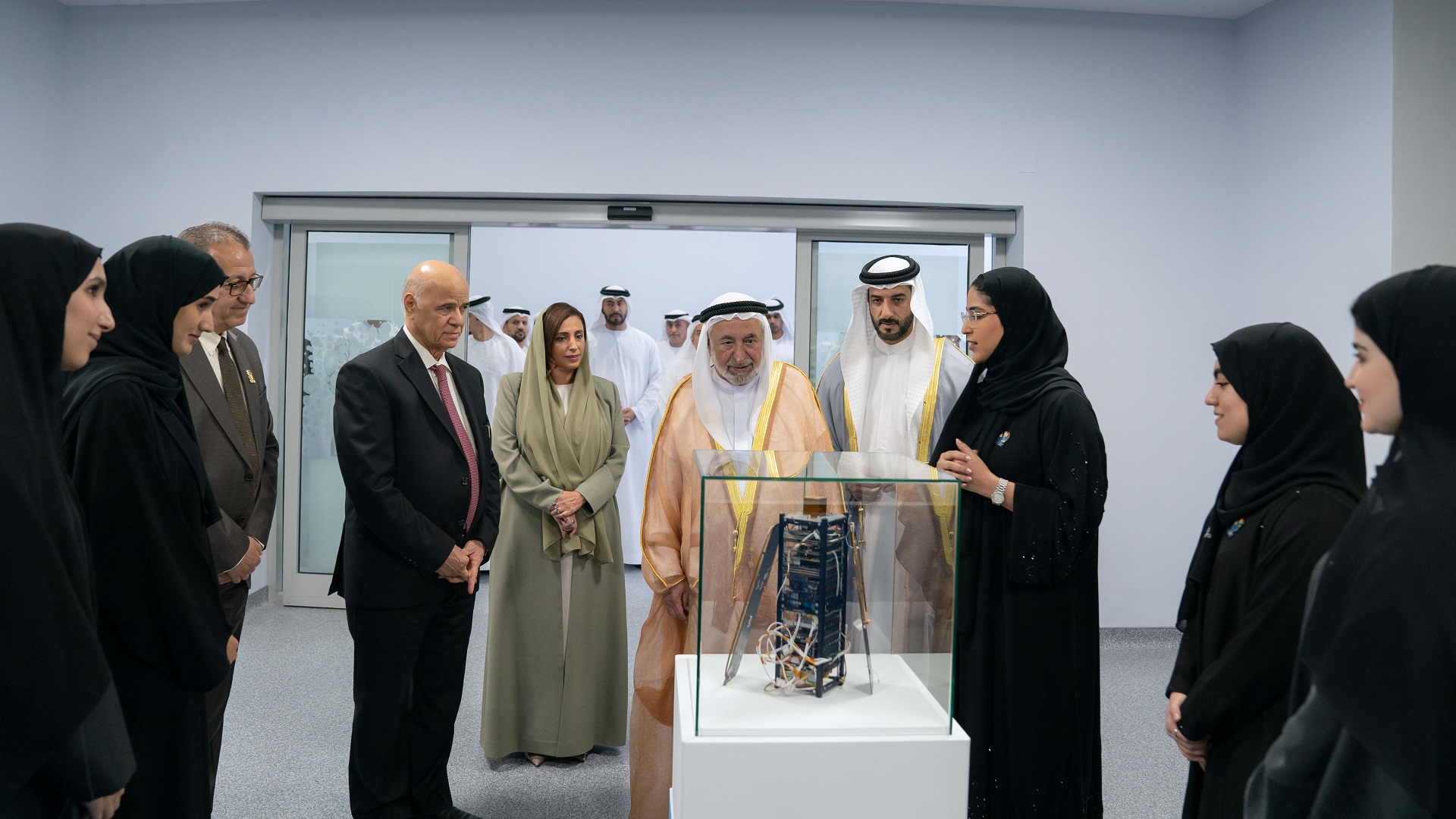 واطلع سموه، خلال جولته، في مختبر الأقمار الصناعية المصغرة على النموذج الهندسي للقمر الصناعي المكعب "الشارقة سات 1"، مستمعاً سموه، إلى شرح مفصل عن آلية عمل القمر الصناعي المكعب وأبرز مواصفاته، كما استعرض مهندسو المشروع لسموه أحدث الصور التي تم التقاطها من "الشارقة سات 1".