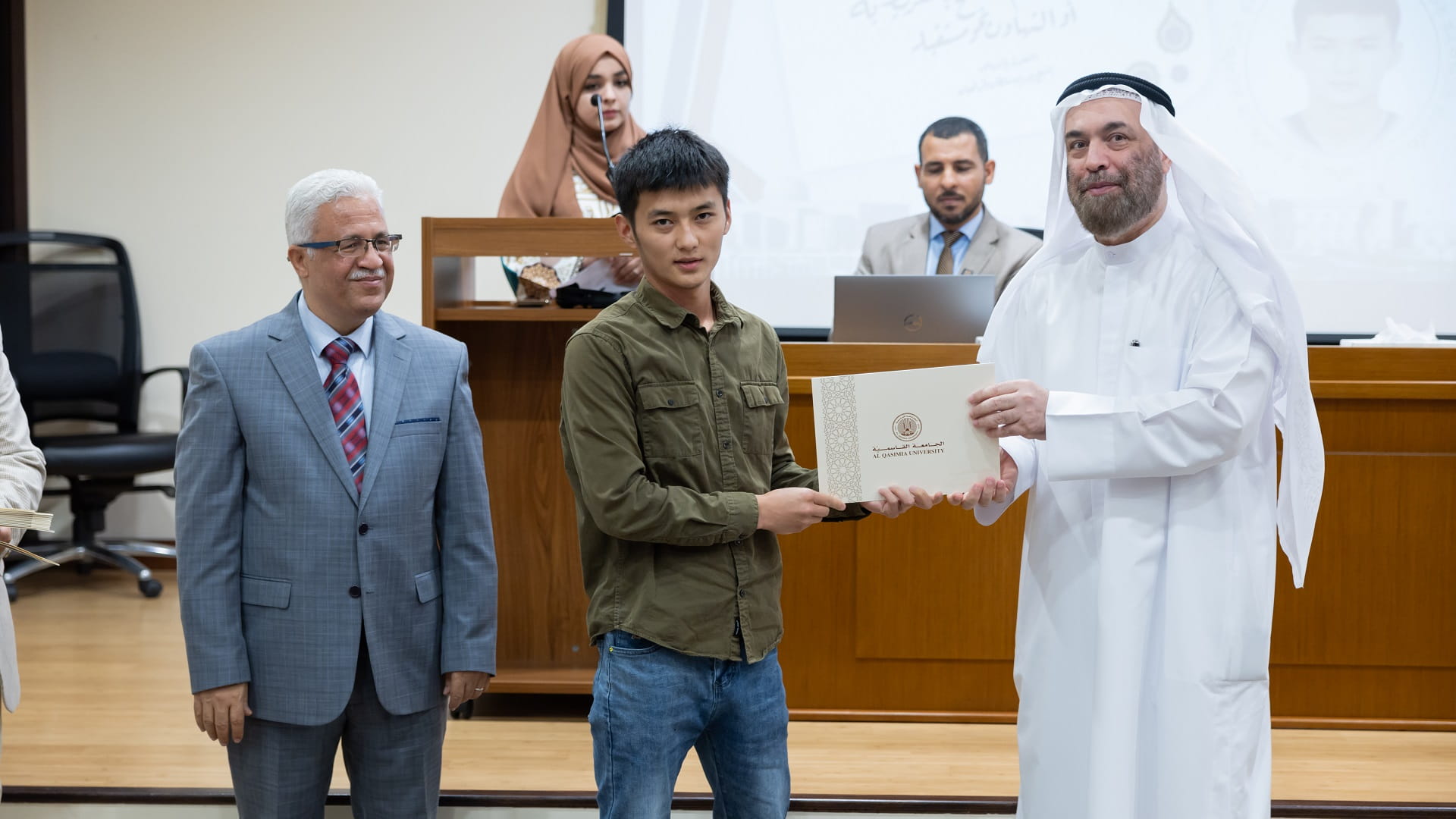 نظّمت كلية الآداب والعلوم الإنسانية في الجامعة القاسمية، حفلاً ختامياً لتكريم الطلبة الفائزين بمسابقاتها الثقافية الثلاث: شاعر القاسمية، وفرسان القراءة، وخطّاط القاسمية، للعام الأكاديمي 2022-2023م، بحضور الأستاذ الدكتور عوّاد الخلف مدير الجامعة، والأستاذ الدكتور حسن الملخ النّائب الأكاديمي عميد الكلية.