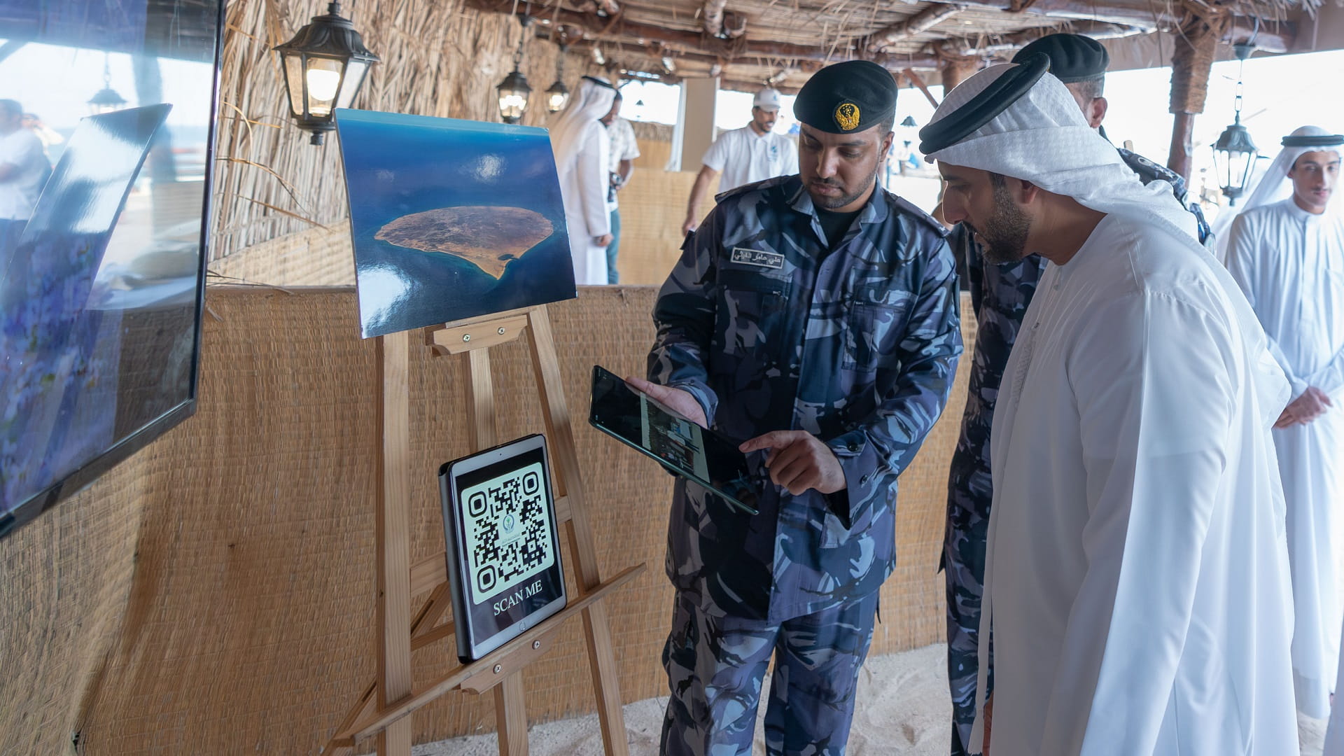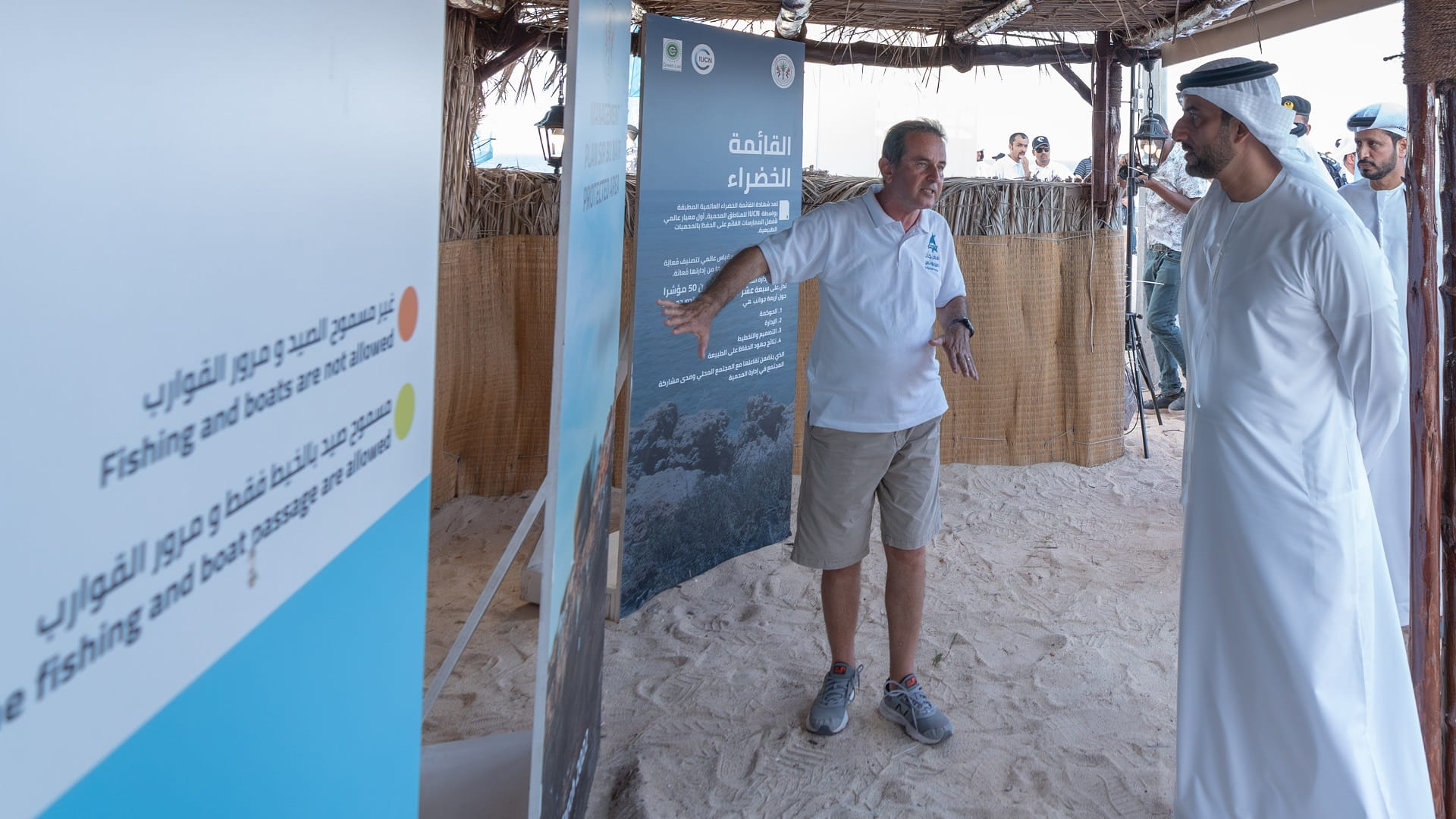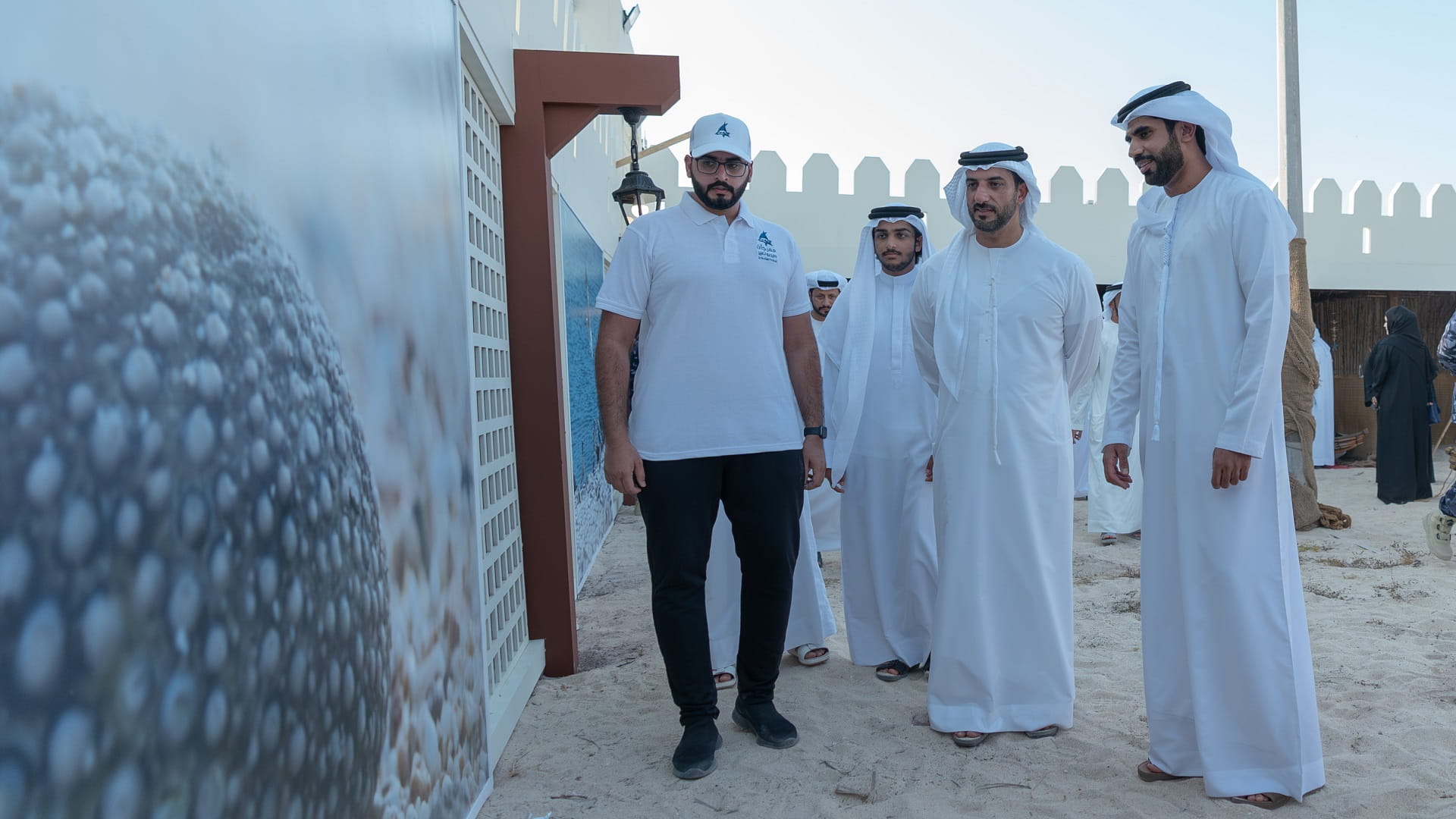 وشاهد سموه، المعرض المصاحب للمهرجان، متعرفاً على ما يضمه من محتويات خاصة بالحرف والأنشطة البحرية المتنوعة، مستمعاً سموه، إلى أبرز ما تقدمه الجهات المشاركة من أنشطة متنوعة تبرز جهودها في الحفاظ على التنوع الحيوي، بالإضافة إلى الشواهد التاريخية حول جزيرة صير بونعير، وما تمتلكه من عناصر بيئية طبيعية.
