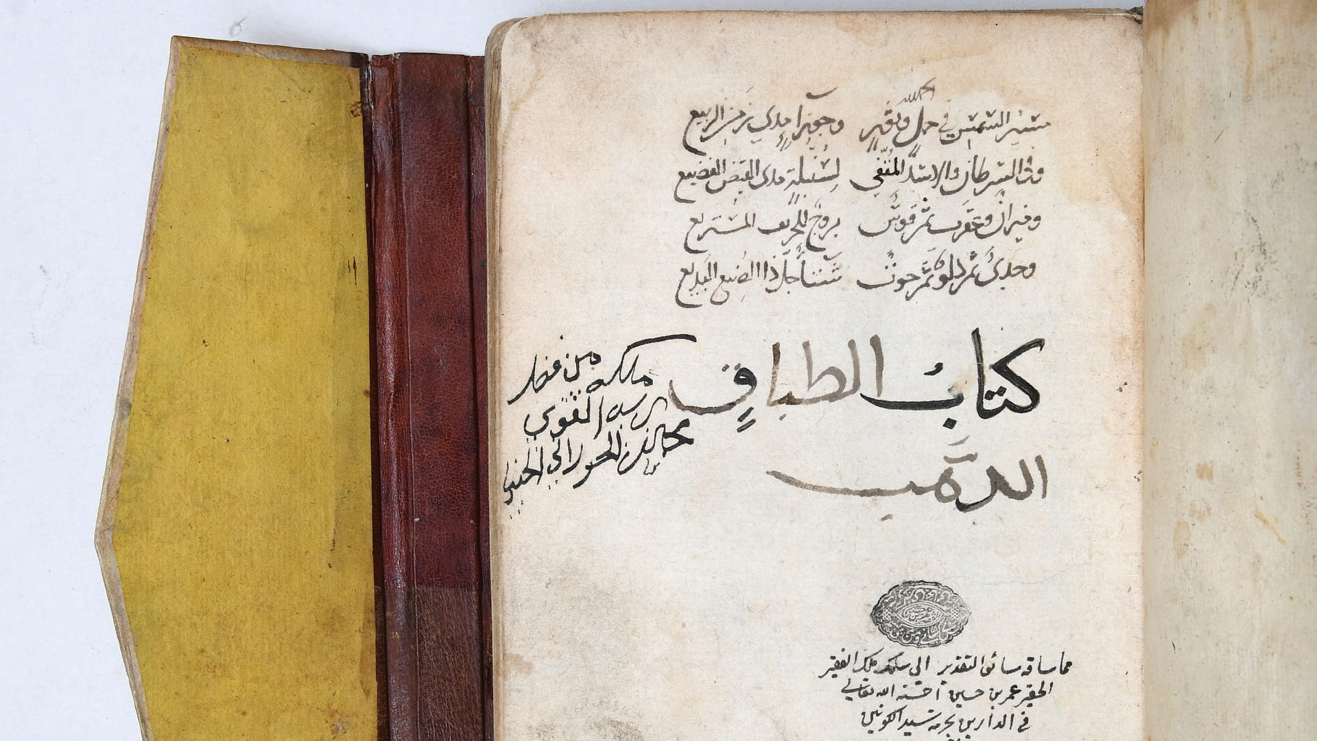 وتشمل المعروضات أيضاً، "الأطباق الذهبية على موائد الخطاب" لشرف الدين عبد المنعم بن حبيب الله شفرح الأصفهاني (1300)، وتتميز بجودتها الأميرية، والتي تتجلى في عناوين المحقق المزخرفة، واليد الأنيقة للنسخ والجودة العالية للورق.