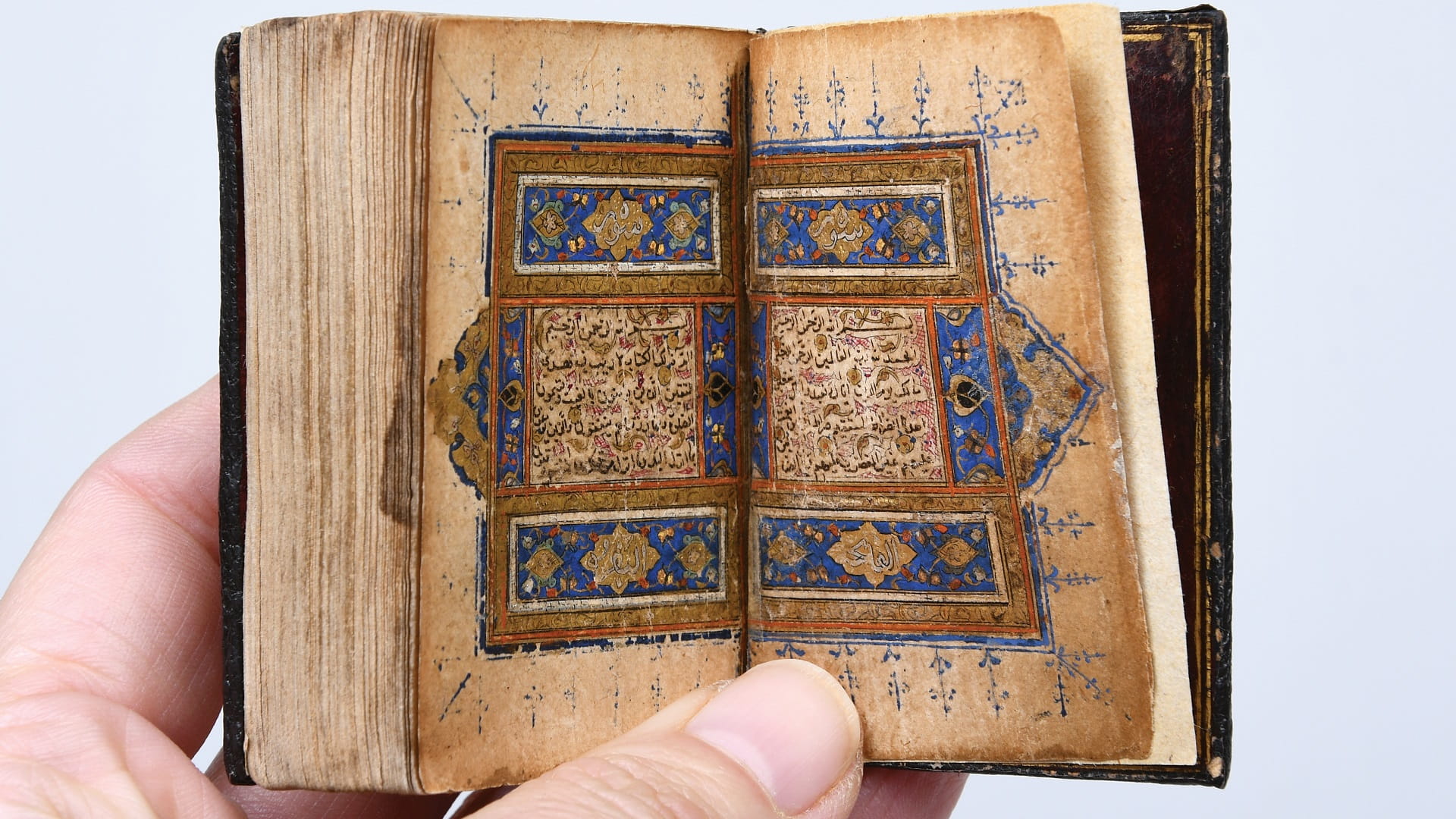 ومن بين المعروضات، مصحف من العهد العثماني كبير ومزين باللونين الأزرق والذهبي، ويعود تاريخ هذا المصحف العثماني الكبير والفاخر المصنوع من الورق المصقول الناعم وخط النسخ الأنيق والذهبي والمتعدد الألوان، إلى منتصف القرن السادس عشر.