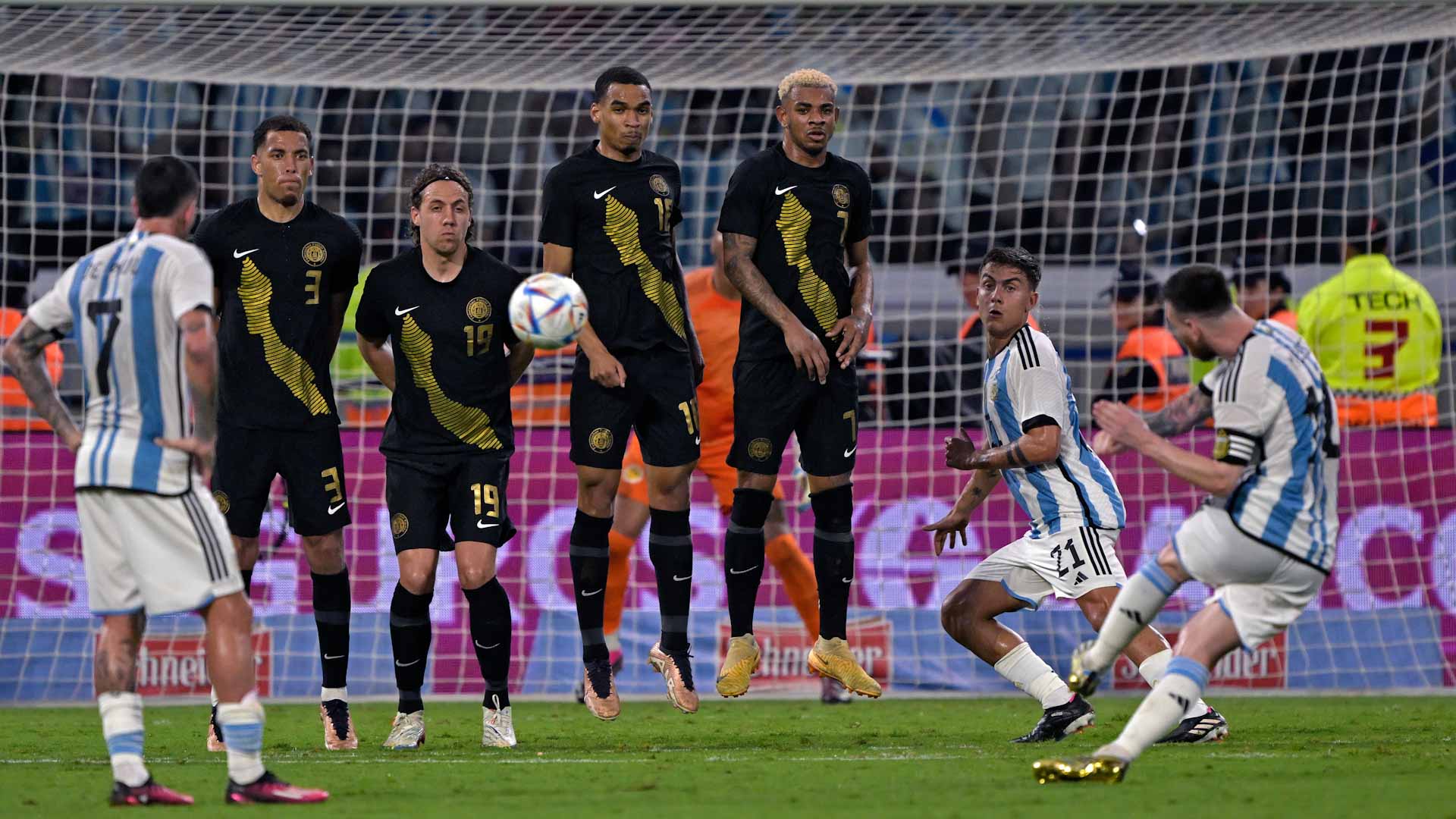 وفي الشوط الثاني، أضاف بريان أجيري، وأليخو فيليز الهدفين الرابع والخامس للأرجنتين في الدقيقتين 50 و87.