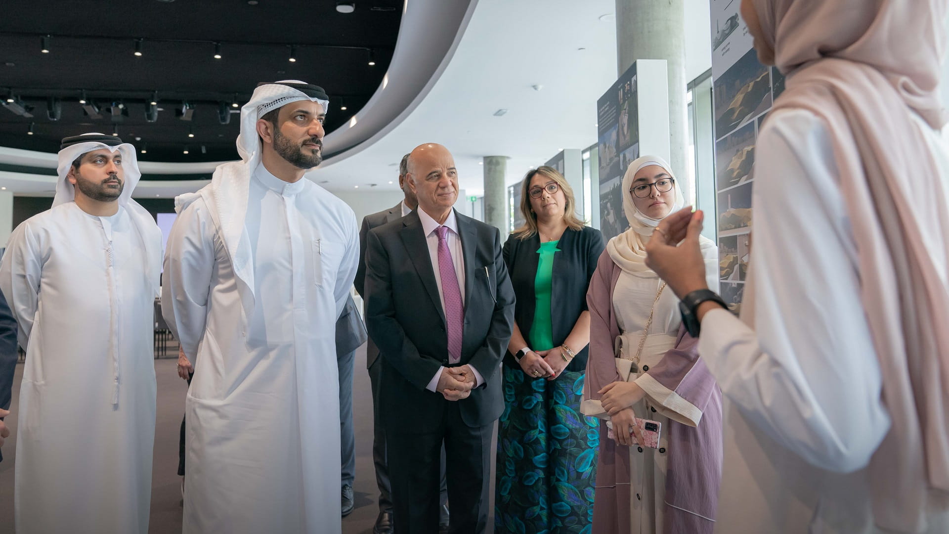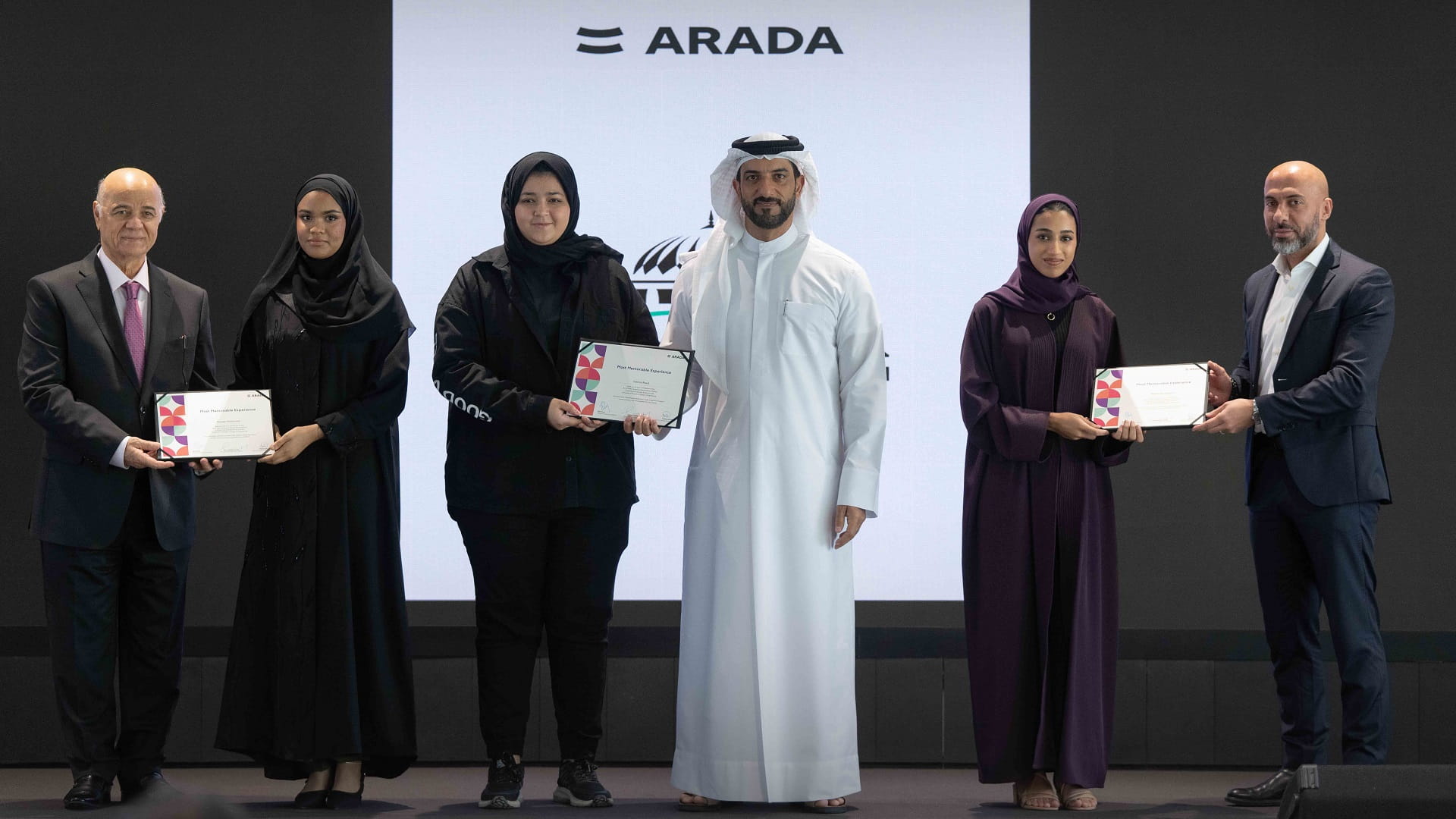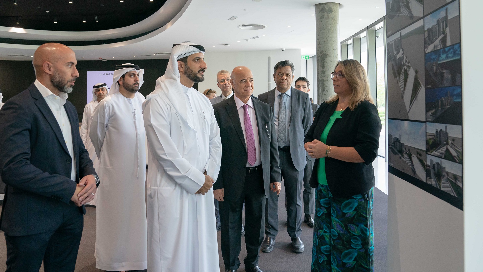 وكرّم سموه، المجموعات المشاركة أصحاب التصاميم المقترحة والمتأهلة التي تم اعتمادها بواسطة فرق العمارة والتصميم في شركة أرادَ، والتقط سموه معهم الصور التذكارية.