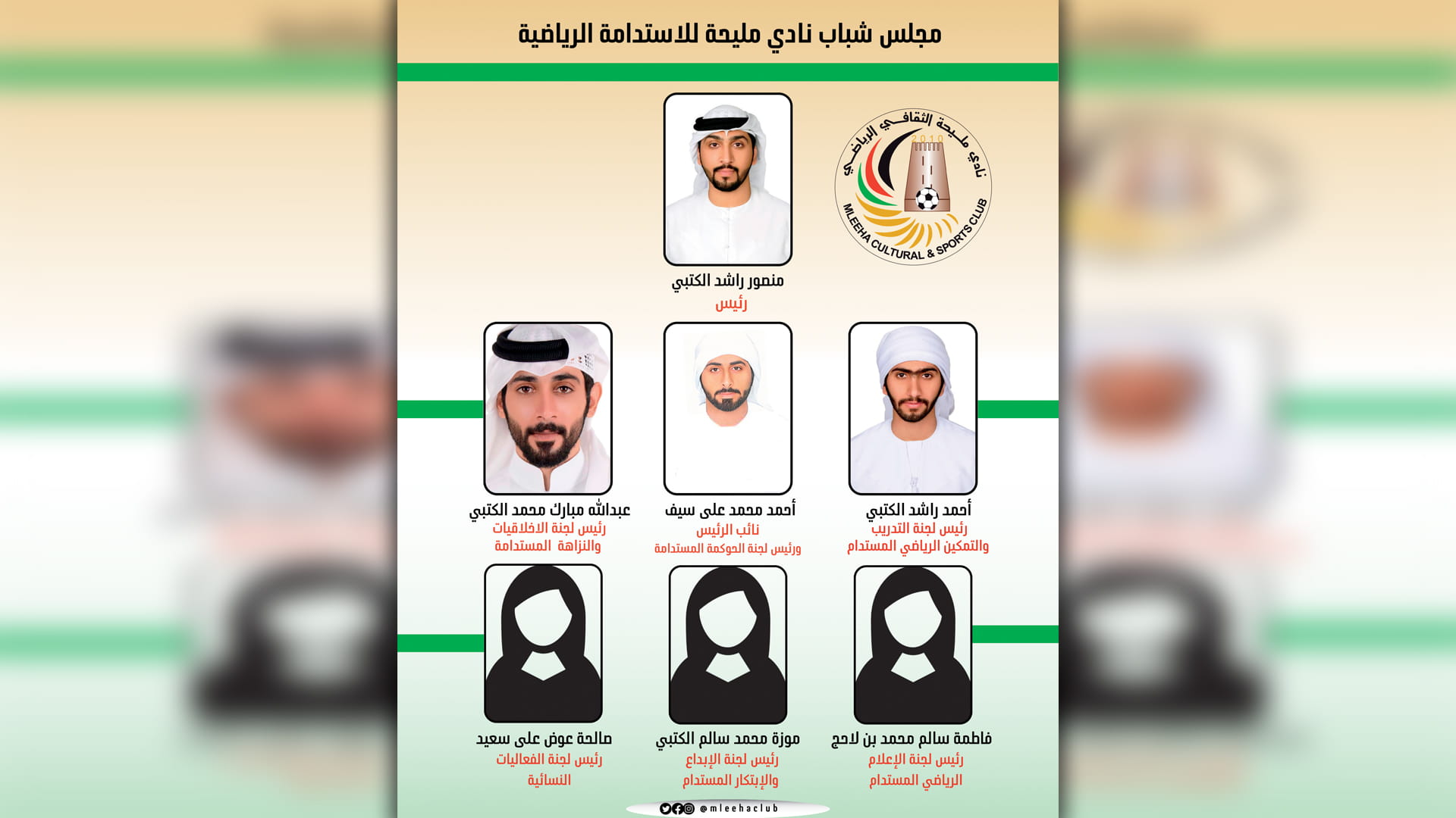 واعتمد مجلس إدارة نادي مليحة، القرار الإداري رقم 77 لسنة 2023م، والذي أصدره سعادة محمد سلطان الخاصوني رئيس مجلس الإدارة، بتشكيل مجلس شباب نادي مليحه الثقافي الرياضي للاستدامة، في إطار مواصلة خطة النادي واستراتيجيته للمشاركة بجائزة مجلس الشارقة الرياضي للاستدامة.