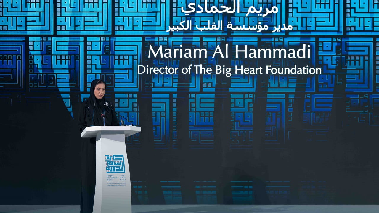 وألقت مريم الحمادي مديرة مؤسسة القلب الكبير كلمة قالت فيها "نلتقي معكم اليوم في سياق تنافسي مختلف، وهي المنافسة في الخير وعلى الخير، الجميع فيها فائز رغم أنها تتوج فائزاً واحداً، فقرار تبني الخير الذي اخترناه وإياكم هو فوز كبير بحد ذاته لأنه قرار احترام حق الإنسان على أخيه الإنسان، وقرار المحبة والعطاء والتعاون، فهذا الخيار الحر الواعي شكّل مشهد العمل الإنساني الحقيقي في العالم، وإذا كان اللاجئون لم يختاروا مصيرهم وأجبروا عليه قهراً وظلماً، فقد اخترنا في الشارقة بقيادة صاحب السمو حاكم الشارقة، ورعاية سمو الشيخة جواهر بنت محمد القاسمي، الوقوف إلى جانبهم حباً وطواعية".