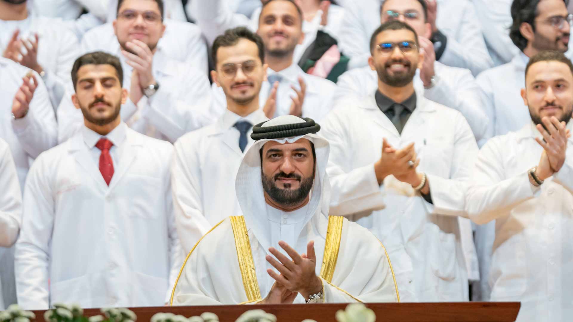 ووجه سمو رئيس جامعة الشارقة رسالة إلى الخريجين والخريجات من الكليات الطبية والعلوم الصحية بأن يسعوا إلى تطوير مستوياتهم للوصول إلى أرقى الدرجات العلمية والبحثية، داعياً إياهم حمل الأمانة والفخر بها، قائلاً سموه: "بفضل المعرفة العلمية التي اكتسبتموها، والتدريب العملي الذي تلقيتموه، أنتم الآن خبراء في مجالاتكم، أرفعوا سقف طموحاتكم للتميز والابتكار. واسعوا في التطوير من خلال البحث العلمي، وكونوا بصمة فارقة، فأنتم آخر دفعةٍ لليوبيل الفضي، ستتوشحون بردائكم الأبيض المنسوج بخيوط قسم الولاء، فحافظوا على هذه الأمانة، أحملوها بكل فخر، وكونوا بها بارين".