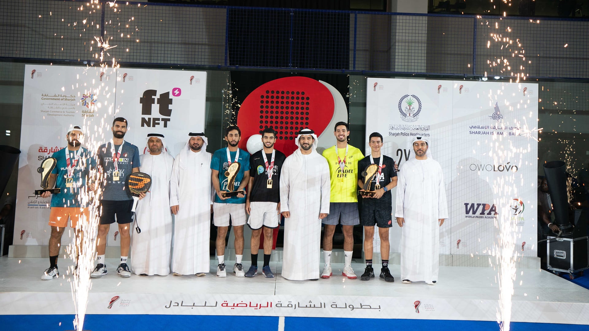 توج سمو الشيخ سلطان بن أحمد بن سلطان القاسمي، نائب حاكم الشارقة، رئيس مجلس الشارقة للإعلام، مساء الأحد، الفائزين بالمركز الأول للفئات الثلاث في بطولة الشارقة الرياضية للبادل تنس بنسختها الأولى، والتي أقيمت على صالة مركز دبليو بي إيه في ضاحية الرحمانية بالشارقة.