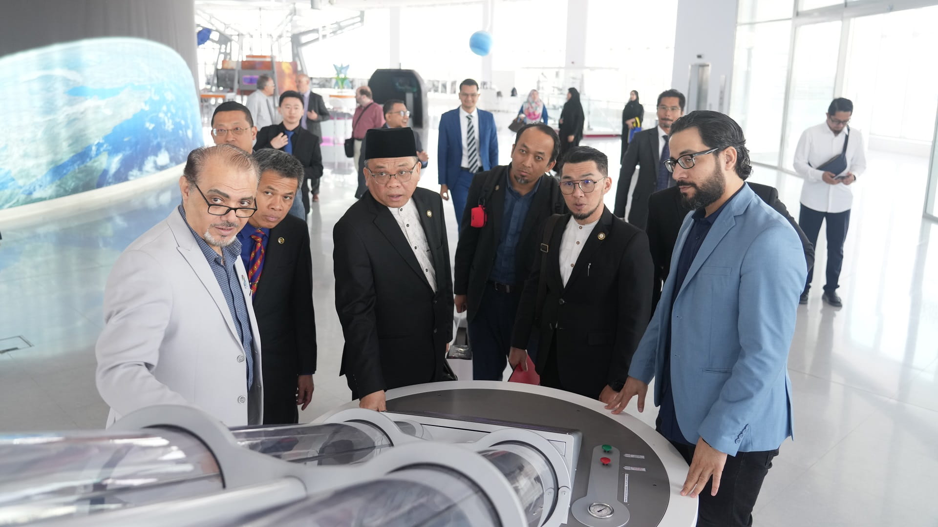 استقبلت أكاديمية الشارقة لعلوم وتكنولوجيا الفضاء والفلك التابعة لجامعة الشارقة وفداً ماليزياً من سلطات حكومة ولاية ساراواك، برئاسة الأونرابل داتو حاجي كيبلي بن حاج ياسين، وذلك بهدف الاطلاع على مرافق الأكاديمية ومنشآتها العلمية، وخلال الزيارة تجول الوفد في المعروضات الفضائية والفلكية والتي تحتوي على معروضات علمية فضائية وفلكية مختلفة توضح نظريات نشأة الكون وتطوره، ومختبرات علوم الفضاء، إلى جانب التعرف على آخر مستجدات تطوير قبة الشارقة الفلكية المزودة بأحدث الأجهزة والتقنيات.