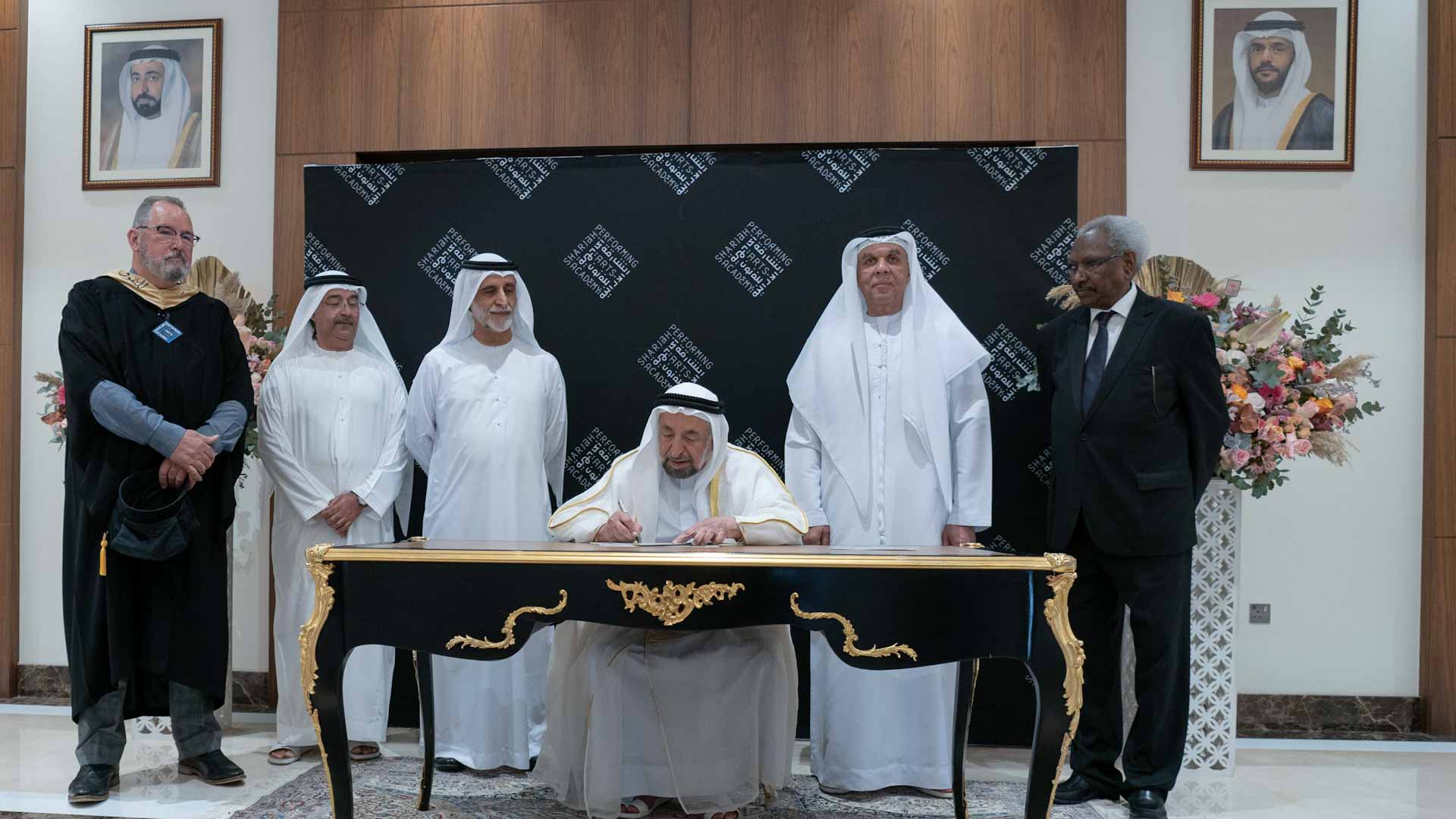 وكان سموه قد قام بتوقيع شهادات الخريجين قبل بدء الحفل والبالغ عددهم 13 خريجاً وخريجة من حملة شهادات البكالوريوس من أكاديمية الشارقة للفنون الأدائية.