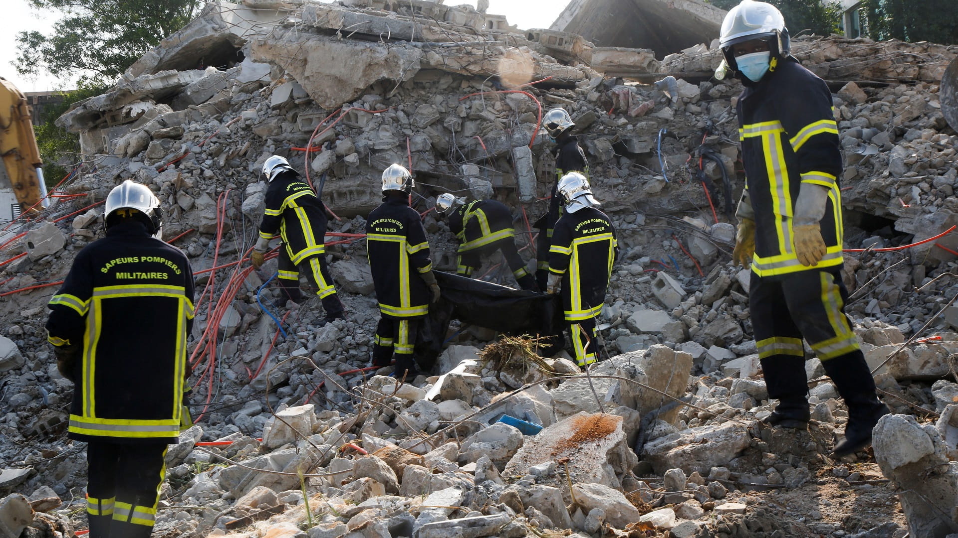 وتتواصل جهود الإنقاذ في الموقع بمنطقة ريفييرا بالميراي الراقية في أبيدجان وسط كومة كبيرة من الخرسانة والحطام.