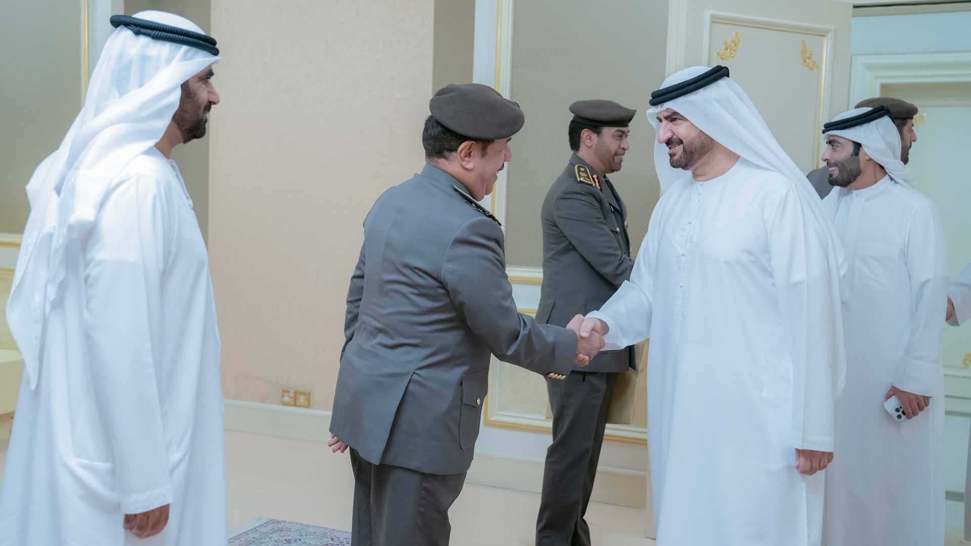 حضر الاستقبال بجانب سمو نائب حاكم الشارقة كل من: الشيخ خالد بن عبد الله القاسمي رئيس هيئة الشارقة للموانئ والجمارك والمناطق الحرة، واللواء سلطان النعيمي مدير عام الإقامة وشؤون الأجانب، واللواء محمد الكويتي مدير عام أمن المنافذ، واللواء عارف الشامسي المدير التنفيذي للإدارة العامة للإقامة وشؤون الأجانب، ومحمد مير عبد الرحمن مدير الموانئ والجمارك في هيئة الشارقة للموانئ والجمارك والمناطق الحرة، ومحمد الرئيسي مدير شؤون المنافذ والنقاط الحدودية.