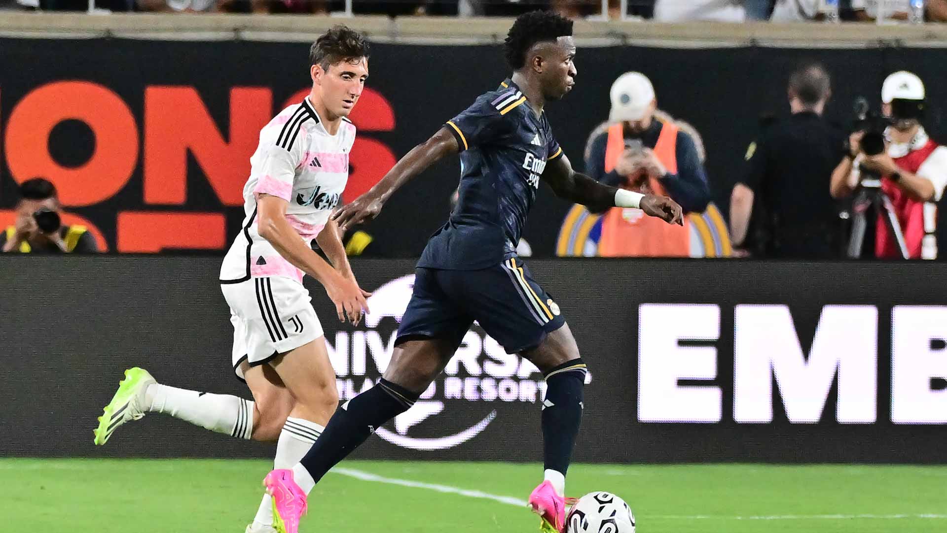 وعلى ملعب (كامبينج وورلد) في الولايات المتحدة، تقدم يوفنتوس بهدف مبكر في الثواني الأولى من عمر المباراة بواسطة مويس كين، قبل أن يضيف زميله الأميركي تيموثي ويا الهدف الثاني للفريق الإيطالي في الدقيقة 20.