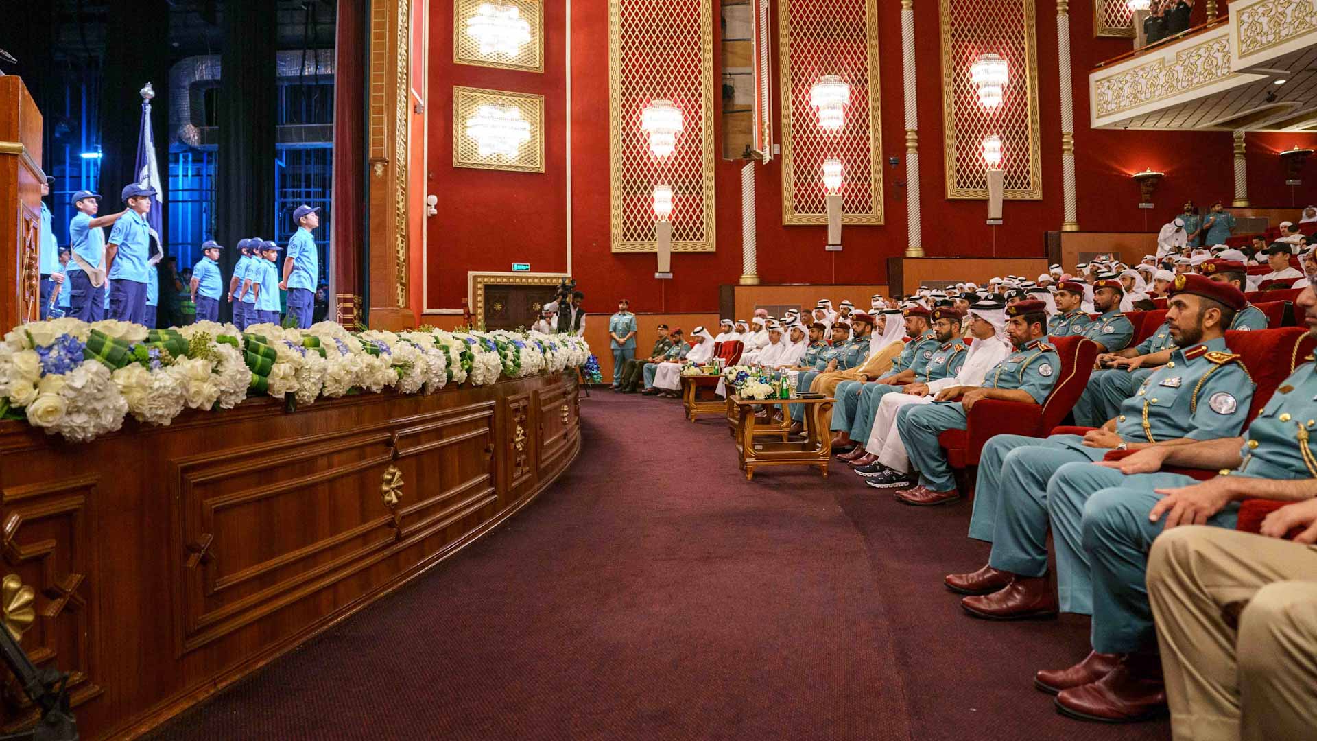 أستهل الحفل بالسلام الوطني لدولة الإمارات العربية المتحدة، تليت بعده آيات بينات من القرآن الكريم، ألقى بعدها صديق الشرطة خليفة أحمد المزروعي كلمة نيابة عن زملاءه وزميلاته من الخريجين والخريجات، قدم فيها الشكر والتقدير إلى القيادة الرشيدة في إمارة الشارقة على دعم ورعاية النشء في مختلف البرامج، مما يسهم في تنمية المواهب والمقدرات ويطور من شخصياتهم ويعدهم للمستقبل.