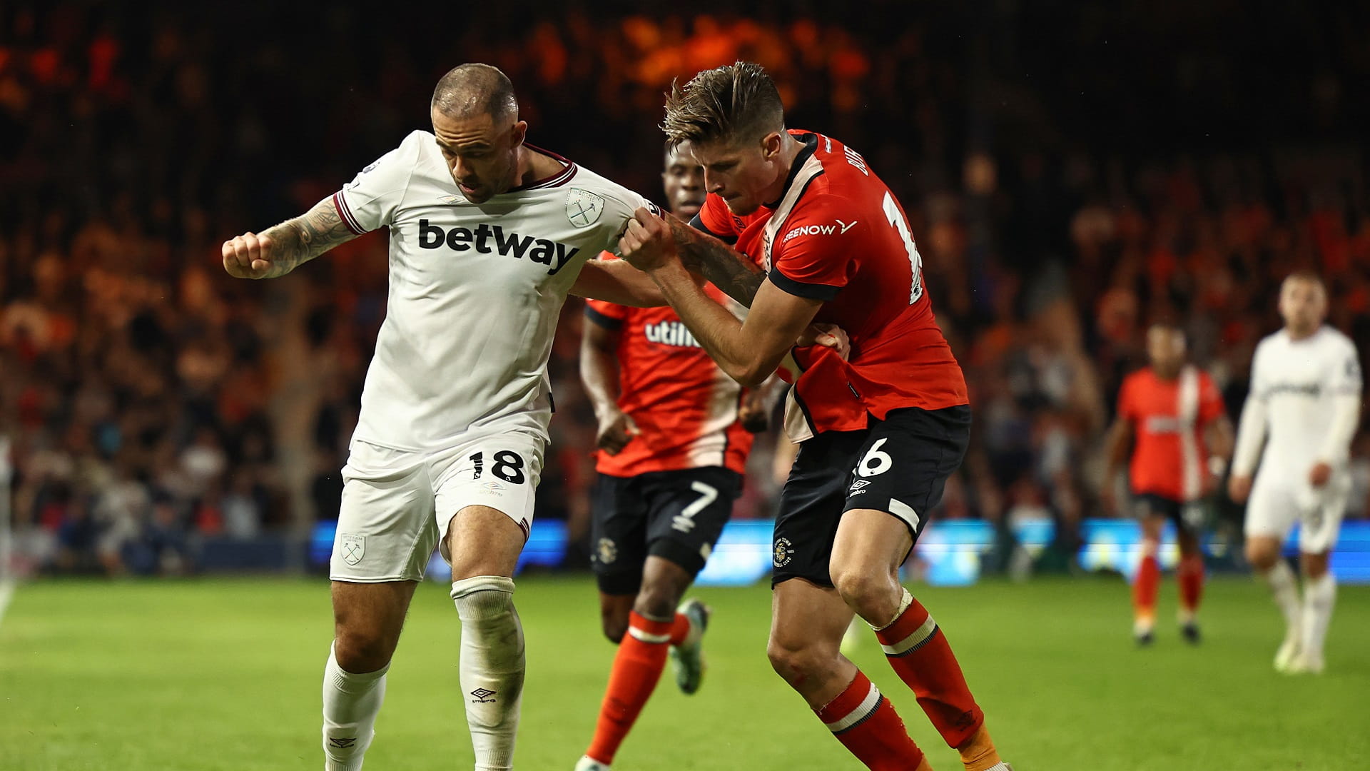فاز فريق ويستهام على مضيفه لوتون تاون 2 / 1 خلال المباراة التي جمعتهما في الجولة الرابعة من الدوري الإنجليزي الممتاز لكرة القدم.