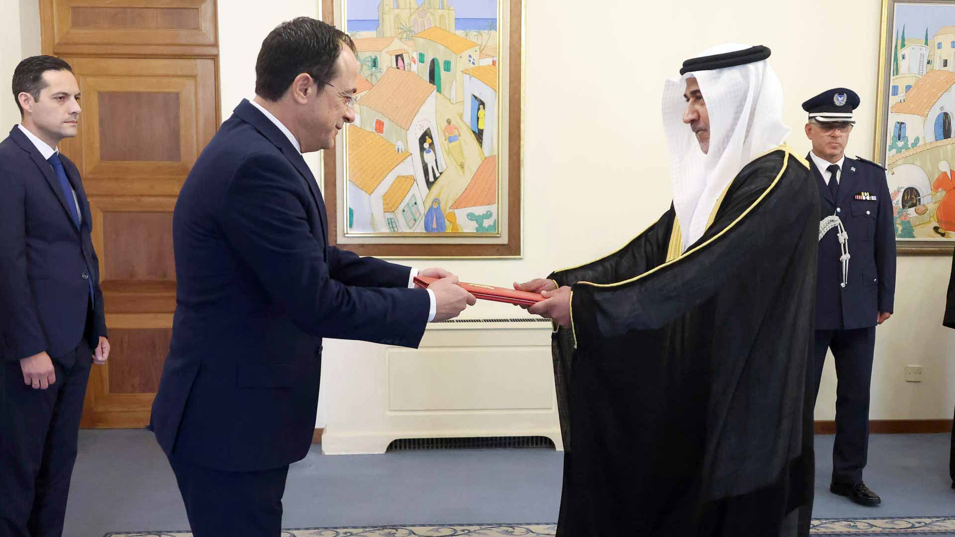 تسلّم سعادة سيف عبد الله الشامسي، وكيل وزارة مساعد لشؤون المراسم في وزارة الخارجية، نسخة من أوراق اعتماد ميروبي كريستوفي، سفيرة جمهورية قبرص لدى الدولة، وذلك في ديوان عام الوزارة.