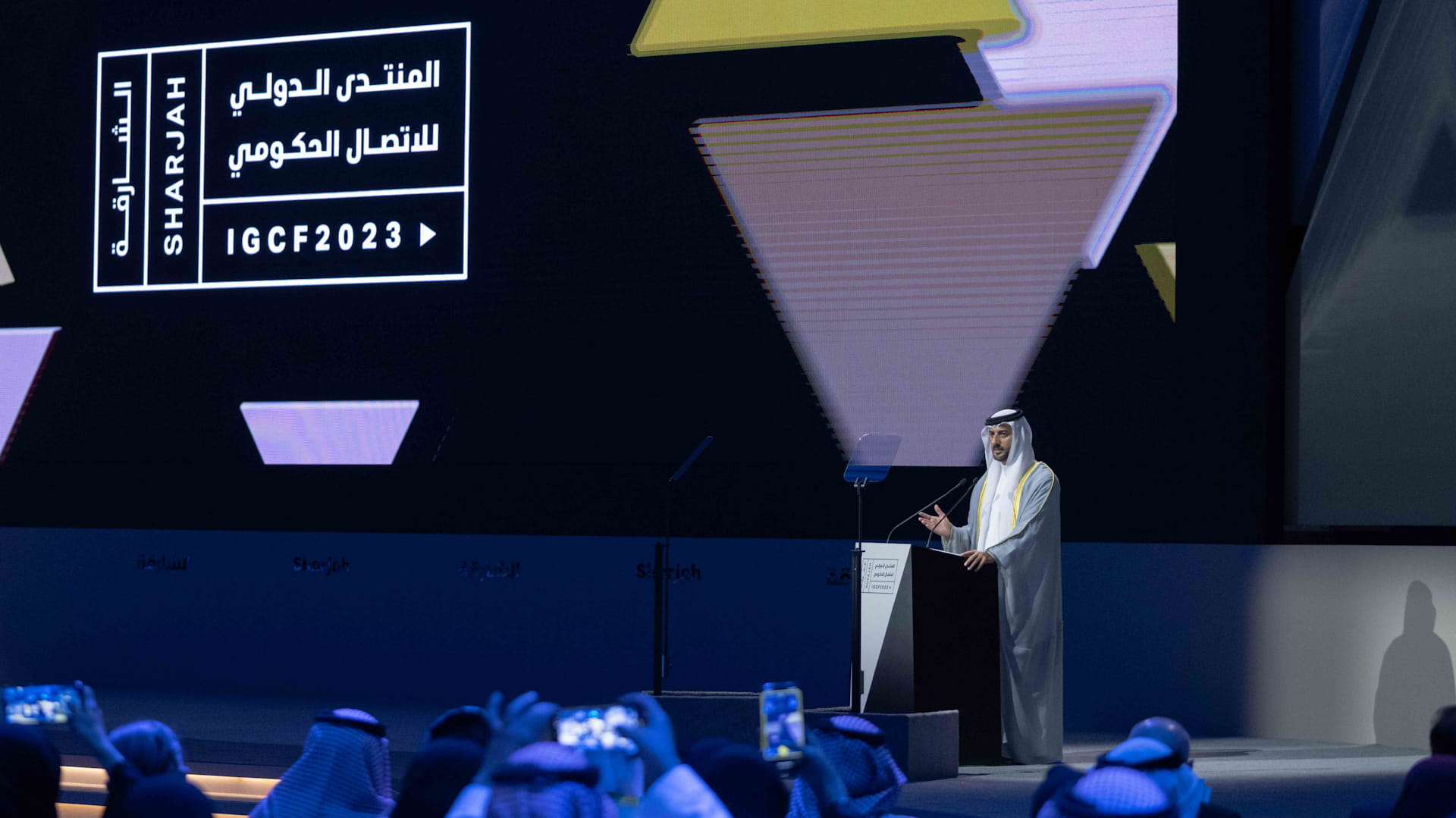 حضر افتتاح فعاليات المنتدى الدولي للاتصال الحكومي بجانب صاحب السمو حاكم الشارقة كل من: سمو الشيخ زايد بن حمدان بن زايد آل نهيان رئيس المكتب الوطني للإعلام، والشيخ خالد بن عبد الله القاسمي رئيس هيئة الشارقة للموانئ والجمارك والمناطق الحرة، والشيخ سالم بن عبد الرحمن القاسمي رئيس مكتب سمو الحاكم، والشيخ فاهم بن سلطان القاسمي رئيس دائرة العلاقات الحكومية، والشيخ محمد بن حميد القاسمي رئيس دائرة الإحصاء والتنمية المجتمعية، والشيخ ماجد بن سلطان القاسمي رئيس دائرة شؤون الضواحي والقرى، والشيخ سلطان بن عبد الله بن سالم القاسمي مدير دائرة الإحصاء والتنمية المجتمعية، والشيخ فيصل بن سعود القاسمي مدير هيئة مطار الشارقة الدولي، والشيخ سالم بن محمد بن سالم القاسمي مدير هيئة الإنماء التجاري والسياحي، وعدد من الشيوخ والوزراء وكبار المسؤولين رؤساء الدوائر الحكومية وأعضاء السلك الدبلوماسي وجمع من الإعلاميين والمختصين.
