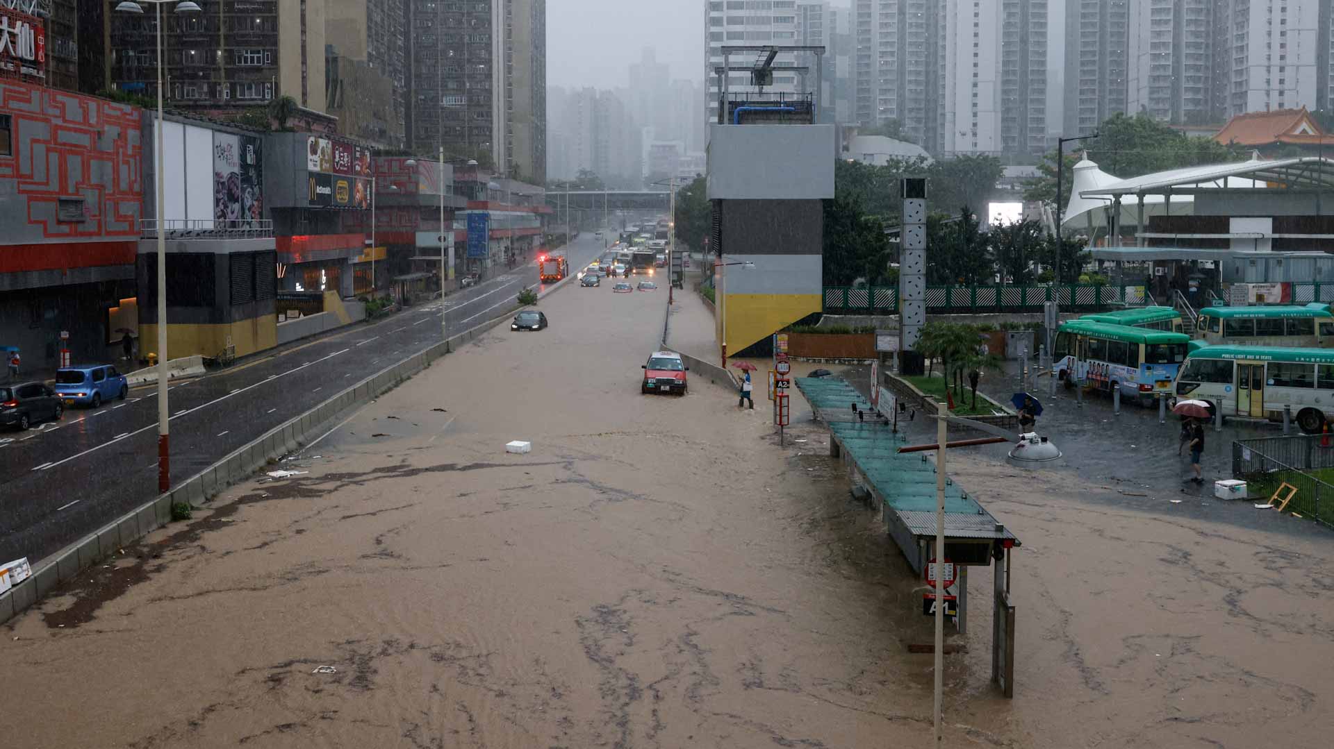 وسط طقس ممطر غير مألوف، وتحذيرات مرصد الأرصاد الجوية "الأحمر" لهطول غزير، أغلقت هونغ كونغ المدارس يوم الخميس بعدما أصدرت السلطات ثاني أعلى إنذار بسقوط أمطار كثيفة، وحذرت من فيضانات عارمة، بعد أيام من تعرض المدينة لموجة أمطار هي الأكثر غزارة منذ 140 عاماً.