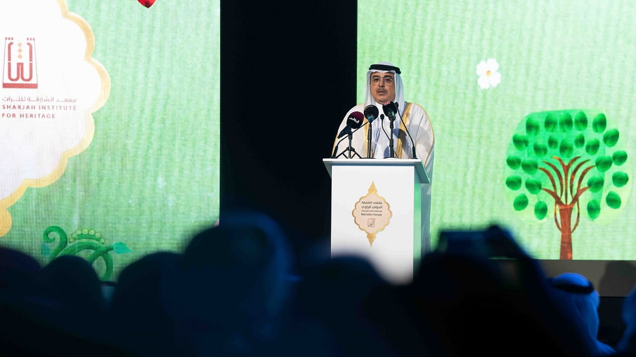وبدأت فعاليات الافتتاح بعرض مرئي جسّد فكرة شعار الدورة الحالية للملتقى حول النباتات وارتباطها بالحكايات، ألقى بعدها الدكتور عبد العزيز المسلم رئيس معهد الشارقة للتراث كلمة، قدم فيها نبذة عن دورة العام الحالي للملتقى متناولاً أهمية النباتِ والشجرِ بشكل خاص في حياة العرب منذ القدم، وفي حياةِ أنعامهم وخيلهم ودوابهم، وفي البيئة التي يقطنونها، حيث كان العرب يستبشرون خيراً مع الطوالع المبشِّرةِ، والسماءِ المنهمرة بالخير والمطر، فتعم حياتَهم النعمى، وتخصب الأرض، وينبت الشجر ويورق، وتسيح الأنعام والمواشي في مراعيها.