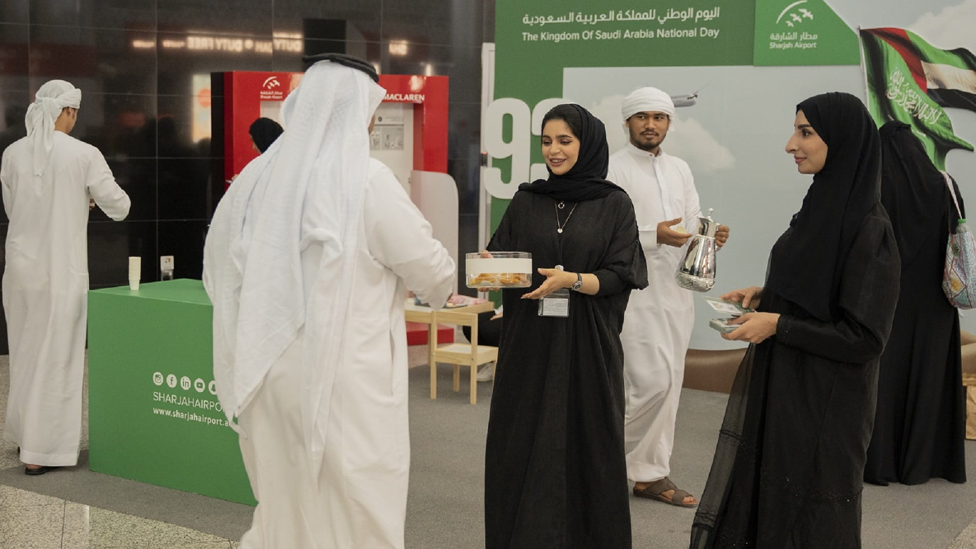 رحّب مطار الشارقة بالمسافرين السعوديين في اليوم الوطني السعودي الثالث والتسعون تعبيراً عن متانة العلاقات الأخوية التي تربط البلدين الشقيقين، وتقديراً لاختيار عدد كبير من السعوديين مطار الشارقة كمركز مفضّل للسفر لهم، فقد وصلت نسبة المسافرين السعوديين إلى ما يقارب 10% من مجموع المسافرين عبر مطار الشارقة حتى نهاية شهر أغسطس، أي مليون و5 آلاف مسافر بزيادة بلغت 57.3% مقارنةً بالفترة ذاتها من العام الماضي.