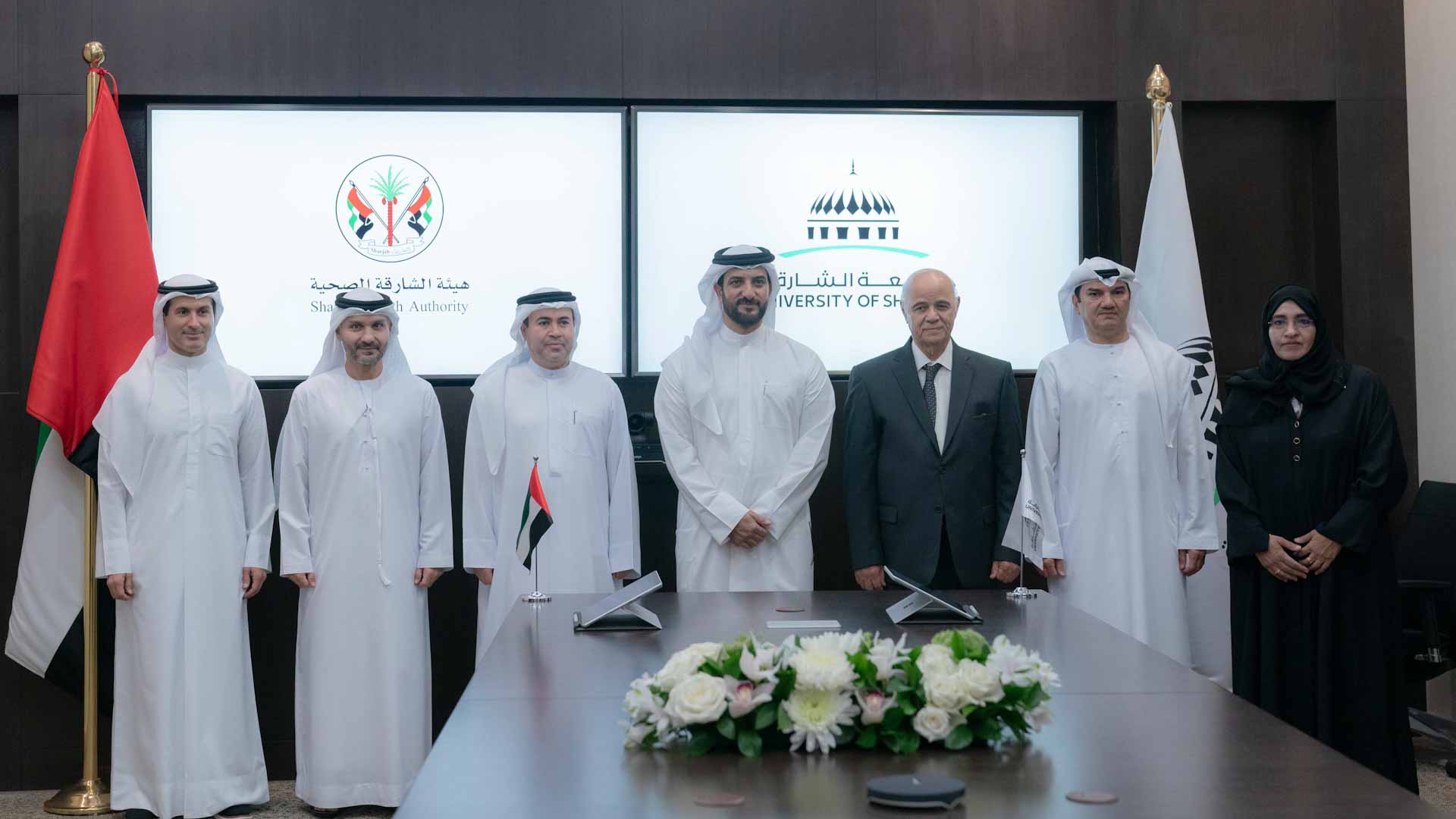 شهد سمو الشيخ سلطان بن أحمد بن سلطان القاسمي نائب حاكم الشارقة، رئيس جامعة الشارقة، توقيع مذكرة تفاهم بين هيئة الشارقة الصحية وجامعة الشارقة، وذلك في مقر أكاديمية الشارقة لعلوم وتكنولوجيا الفضاء والفلك.