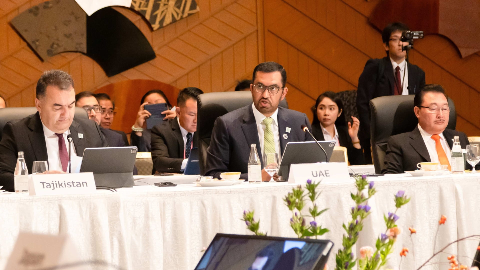 ونقل معالي الدكتور سلطان الجابر، تحيات صاحب السمو الشيخ محمد بن زايد آل نهيان، رئيس الدولة "حفظه الله"، إلى رئيس الوزراء الياباني، مؤكداً حرص القيادة في دولة الإمارات على ترسيخ التعاون مع اليابان الصديقة لتعزيز الطموح المناخي، وخفض الانبعاثات، وإنتاج واستخدام الطاقة النظيفة، وقيادة العمل المناخي في المجتمع الدولي لتحفيز مسارات تحقيق انتقال منظم ومسؤول وعادل في قطاع الطاقة.