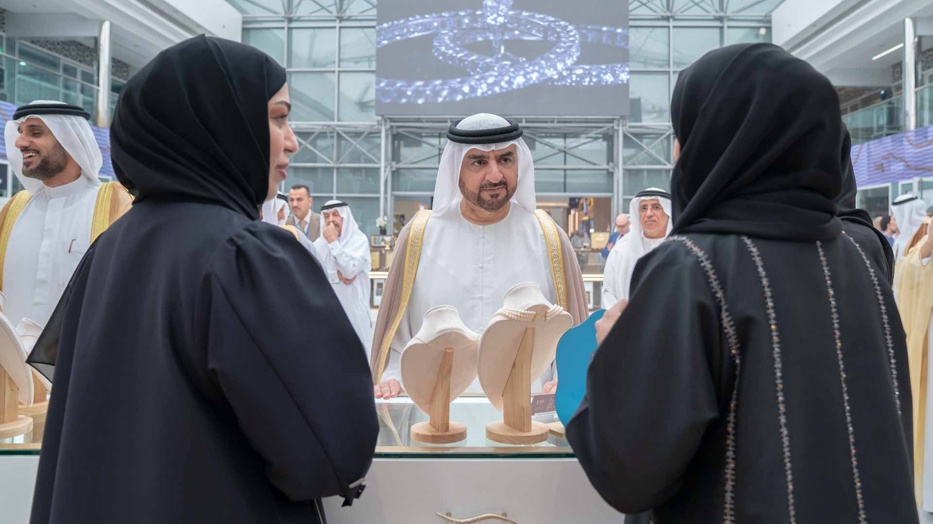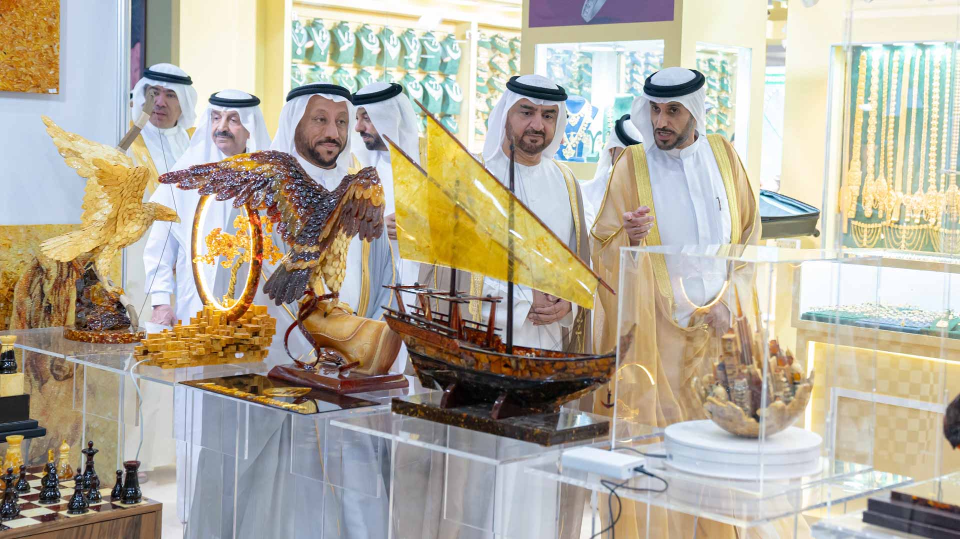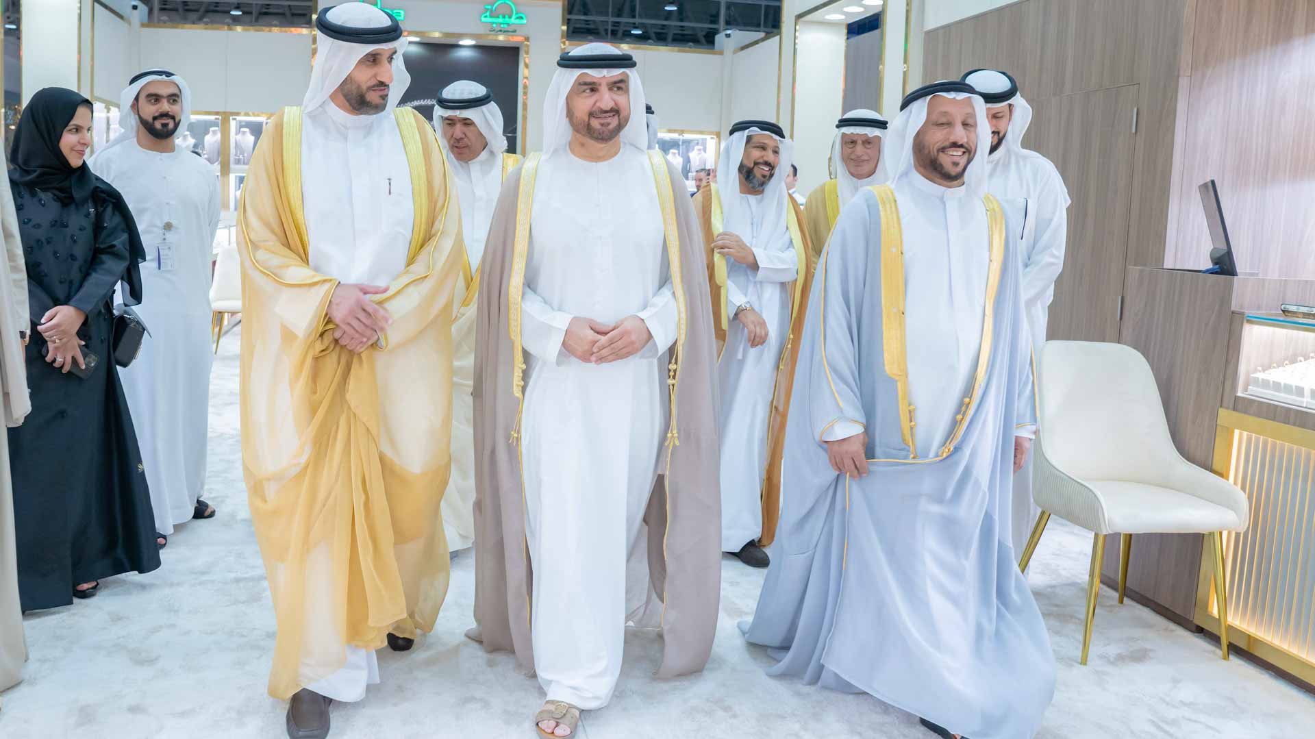 وتجول سموه في أروقة المعرض الذي ينظمه مركز إكسبو الشارقة، بدعم من غرفة تجارة وصناعة الشارقة، وبمشاركة أكثر من 500 شركة وعلامة تجارية محلية وعالمية، ويمتد على مساحة 30 ألف متر مربع، مطلعاً سموه على أحدث التصاميم والابداعات من المجوهرات والمشغولات الذهبية والساعات والذهب والألماس والأحجار الكريمة واللؤلؤ.