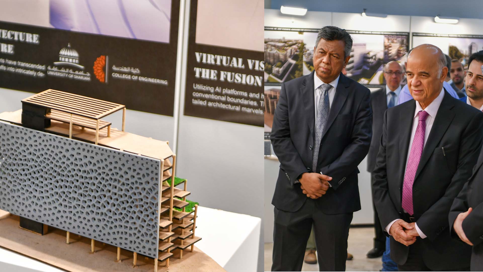 من منطلق تشجيع الطلبة على تجربة التقنيات الحديثة ودمجها في العملية التعليمية بهدف الابتكار واستشراف المستقبل، افتتح الأستاذ الدكتور حميد مجول النعيمي، مدير جامعة الشارقة معرض "رؤية مستقبلية: الهندسة المعمارية المدعومة بالذكاء الاصطناعي"، والذي نظمه قسم الهندسة المعمارية بكلية الهندسة، بمشاركة 25 طالباً وطالبة من طلبة السنة الثانية للقسم لعرض مجموعة كبيرة من التصاميم المعمارية المبتكرة والرسومات المرئية الواقعية ومقاطع الفيديو الذكية، وذلك بمقر كلية الهندسة، بحضور الأستاذ الدكتور عبد الوهاب بن محمد، عميد كلية الهندسة، والأستاذ الدكتور عماد مشتهى، رئيس قسم الهندسة المعمارية، والدكتور عارف مقصود المشرف العام على مشاريع الطلبة.