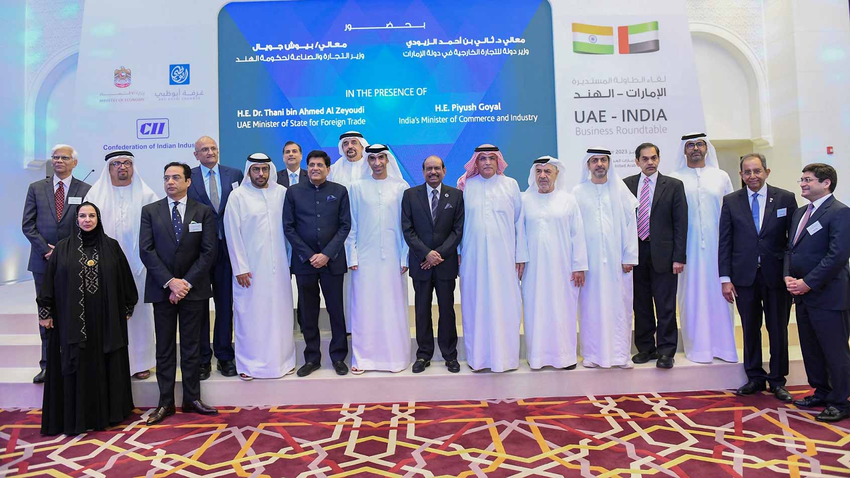 بحضور معالي الدكتور ثاني بن أحمد الزيودي، وزير دولة للتجارة الخارجية، نظمت وزارة الاقتصاد بدولة الإمارات وغرفة تجارة وصناعة أبوظبي لقاء أعمال مشترك لوفد رفيع المستوى من جمهورية الهند برئاسة معالي بيوش جويال وزير التجارة والصناعة ضم أكثر من 20 رئيس تنفيذي لعدد من أبرز الشركات الهندية، لبحث سبل تعزيز العلاقات الاقتصادية الثنائية في إطار اتفاقية الشراكة الاقتصادية الشاملة بين دولة الإمارات العربية المتحدة وجمهورية الهند والتي دخلت حيّز التنفيذ في مايو 2022، حيث ناقش الحضور آليات التعاون المستقبلي وسبل تعزيز الفرص الاستثمارية والاقتصادية بين البلدين.