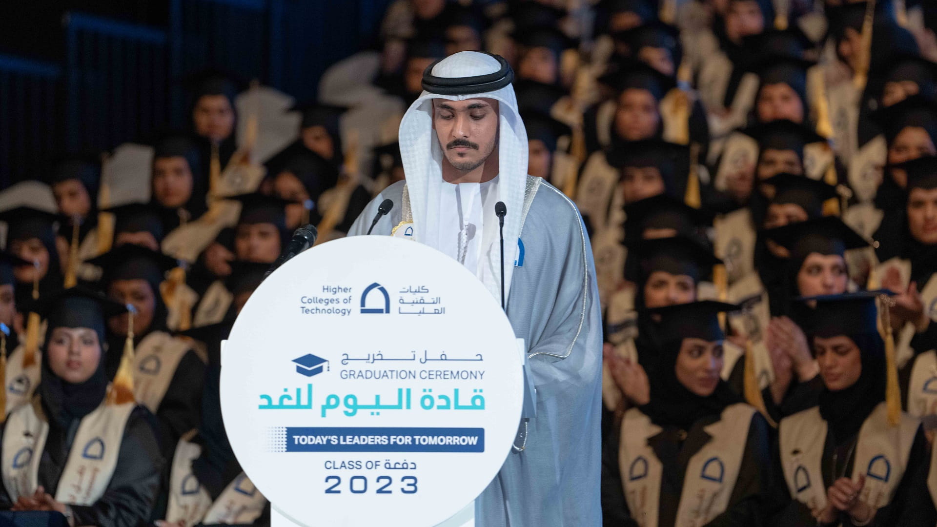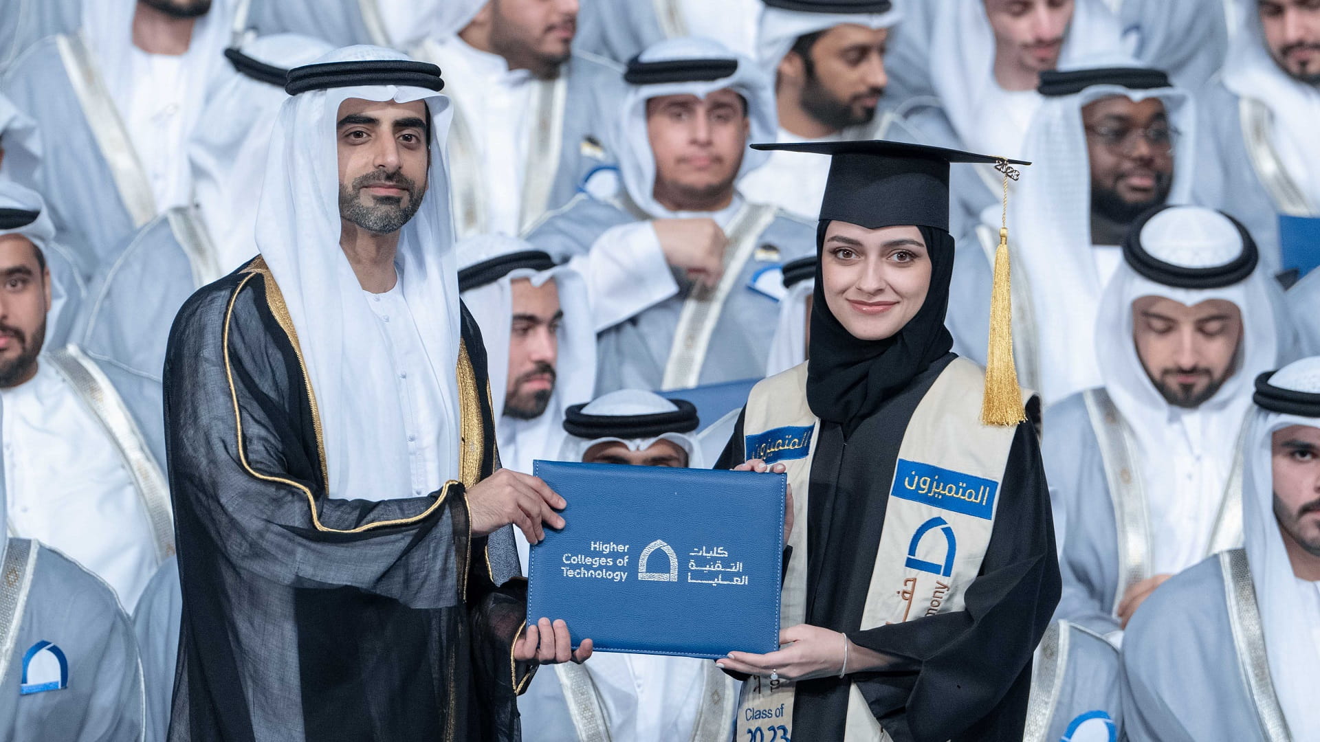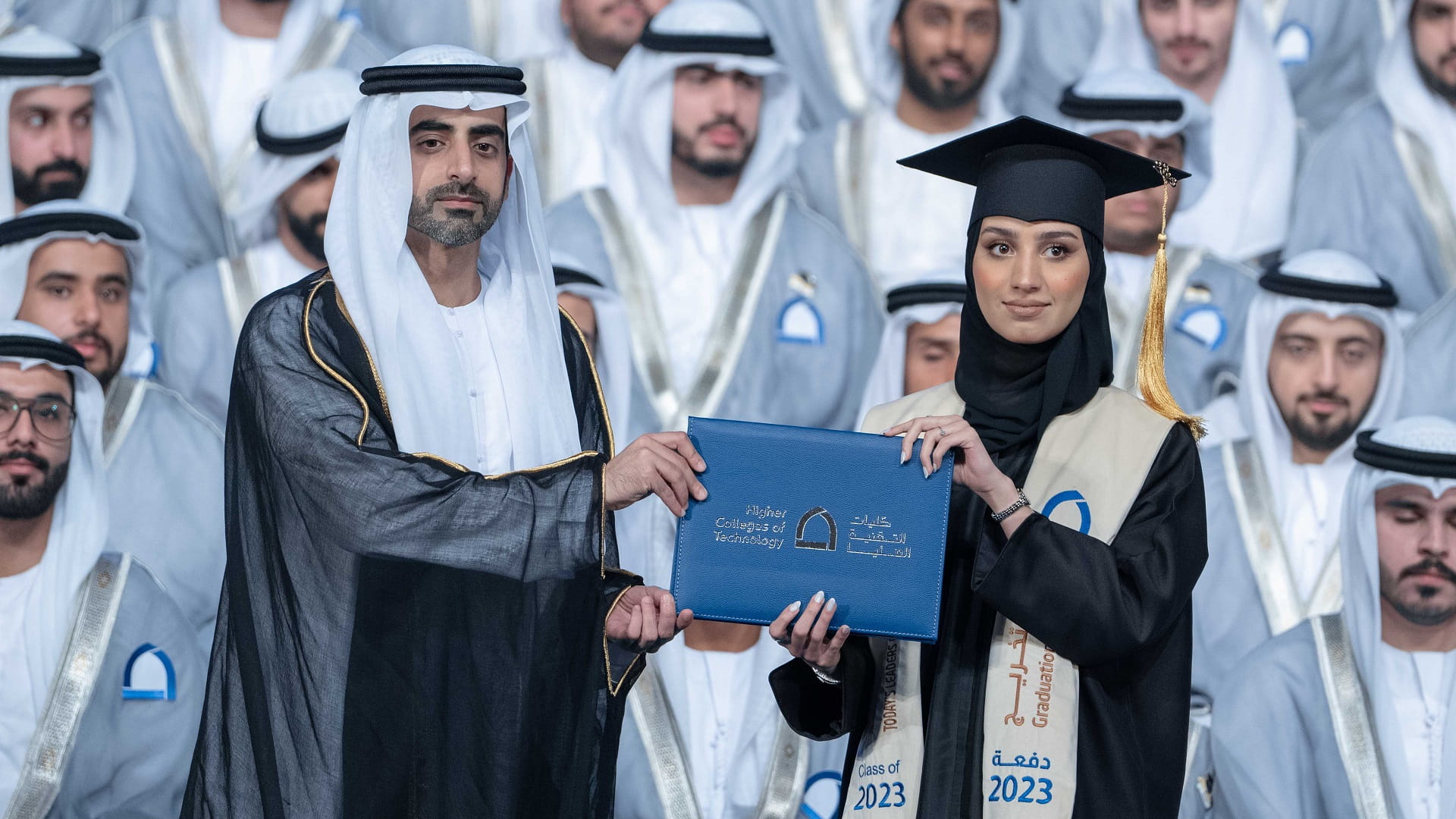 حضر الشيخ سالم بن عبد الرحمن القاسمي، رئيس مكتب سمو الحاكم، عصر اليوم الخميس، حفل تخريج 631 خريجاً وخريجة من كليات التقنية العليا بالشارقة، دفعة "قادة اليوم للغد 2023"، وذلك في قاعة المدينة الجامعية.