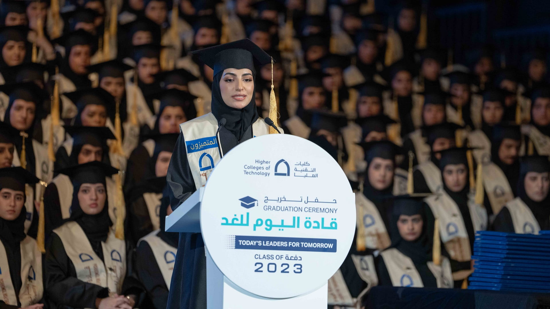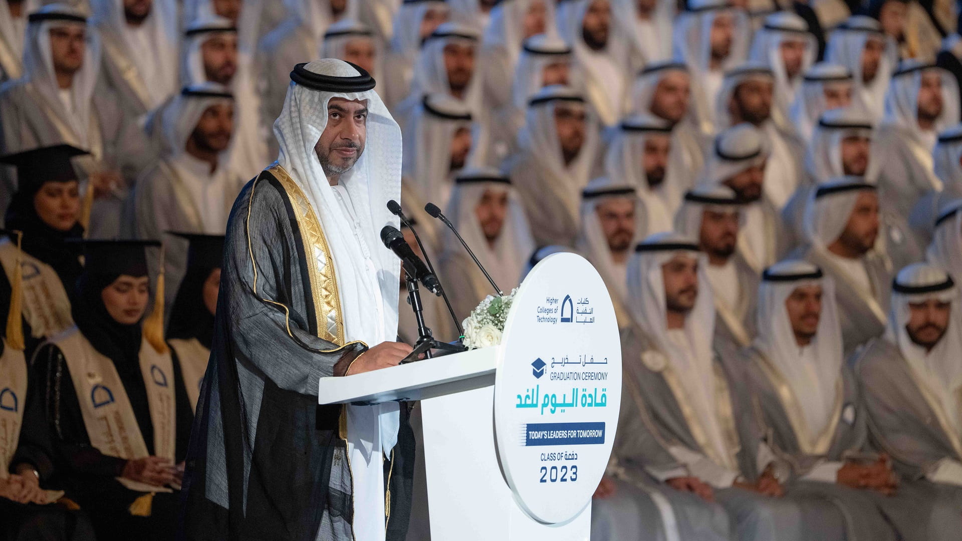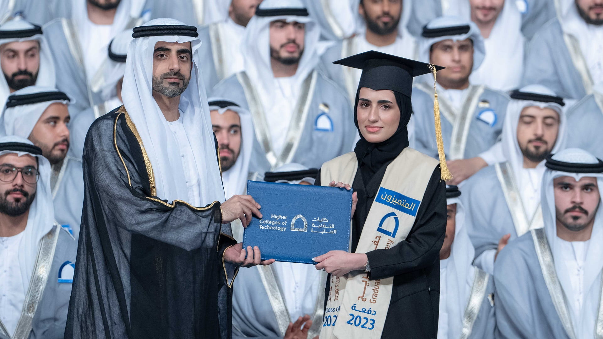 حضر الشيخ سالم بن عبد الرحمن القاسمي، رئيس مكتب سمو الحاكم، عصر اليوم الخميس، حفل تخريج 631 خريجاً وخريجة من كليات التقنية العليا بالشارقة، دفعة "قادة اليوم للغد 2023"، وذلك في قاعة المدينة الجامعية.