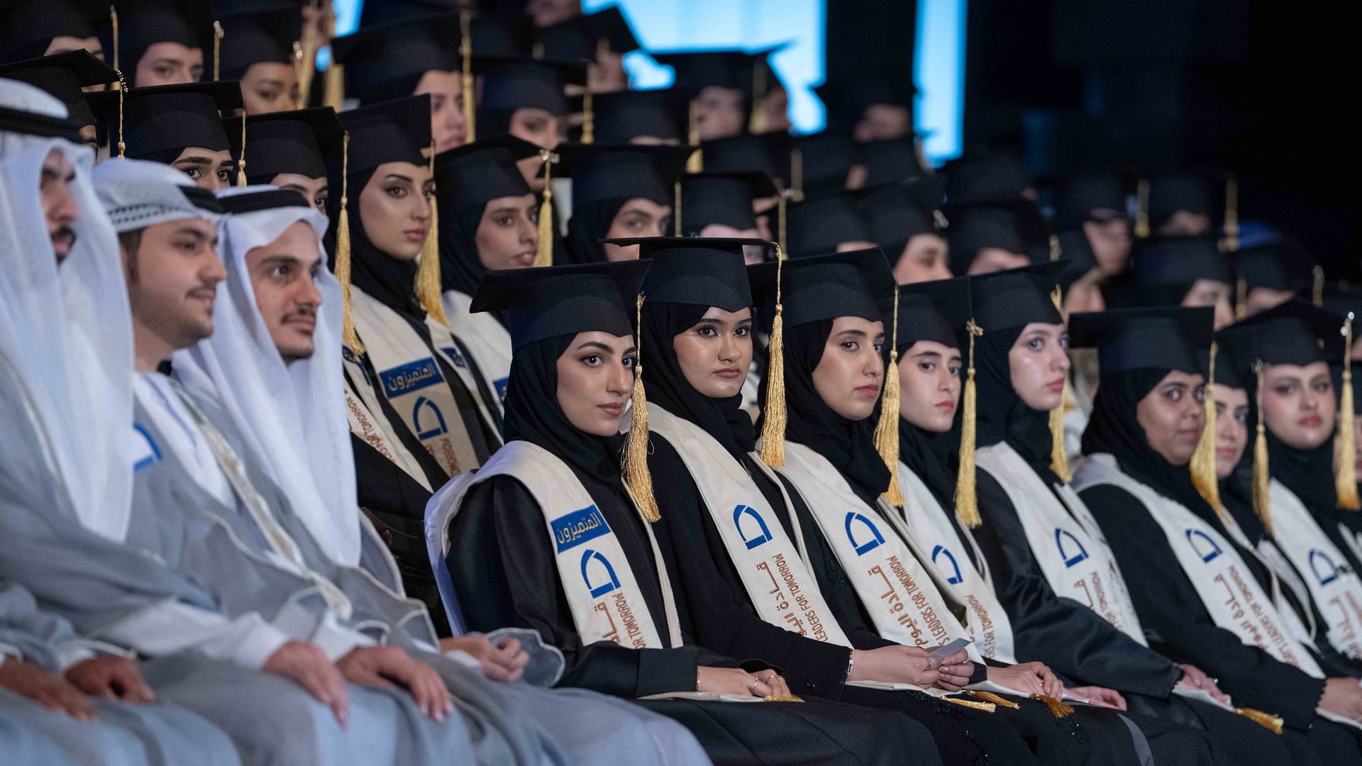 انطلقت بعدها مراسم التخريج، حيث تفضل رئيس مكتب سمو الحاكم بتكريم الخريجين والخريجات بتسليمهم شهادات التخرج، منهم 205 خريجين و426 خريجة، من تخصصات الهندسة والعلوم الصحية، وعلوم الكمبيوتر والمعلومات، وإدارة الأعمال، والإعلام التطبيقي والتربية، مهنئاً إياهم بالتخرج، ومتمنياً لهم دوام التوفيق والنجاح والتقط معهم الصور التذكارية.
