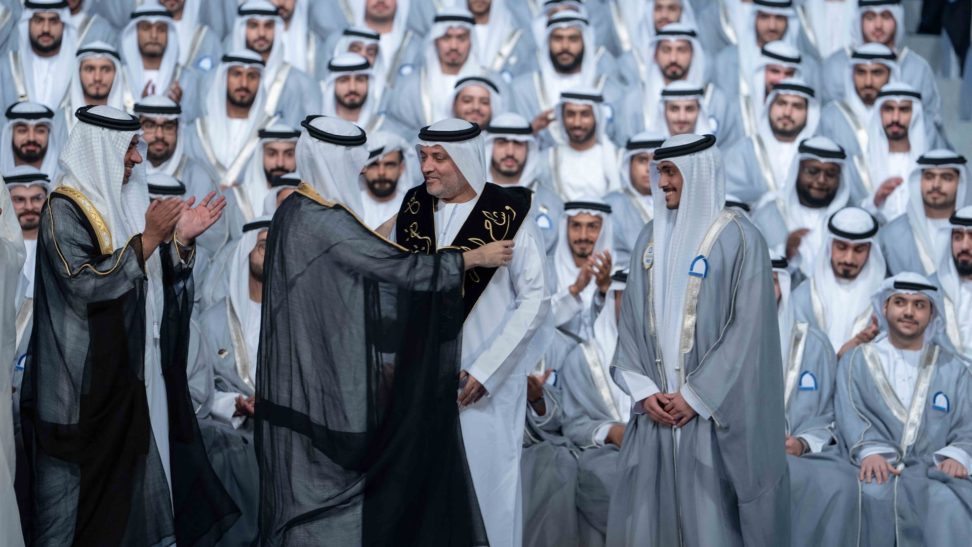 وتفضل الشيخ سالم بن عبد الرحمن القاسمي، بتقديم وشاح الفخر إلى كل من: والد الخريج عبد العزيز بن درويش، الأول على مستوى الطلاب، ووالدة الخريجة مريم طارق الهرمودي، الأولى على مستوى الطالبات، كتكريم وعرفان لدور الآباء والأمهات في رعاية الأبناء ونجاحهم في دراستهم، وحثّهم على التفوق وتخرجهم بامتياز.