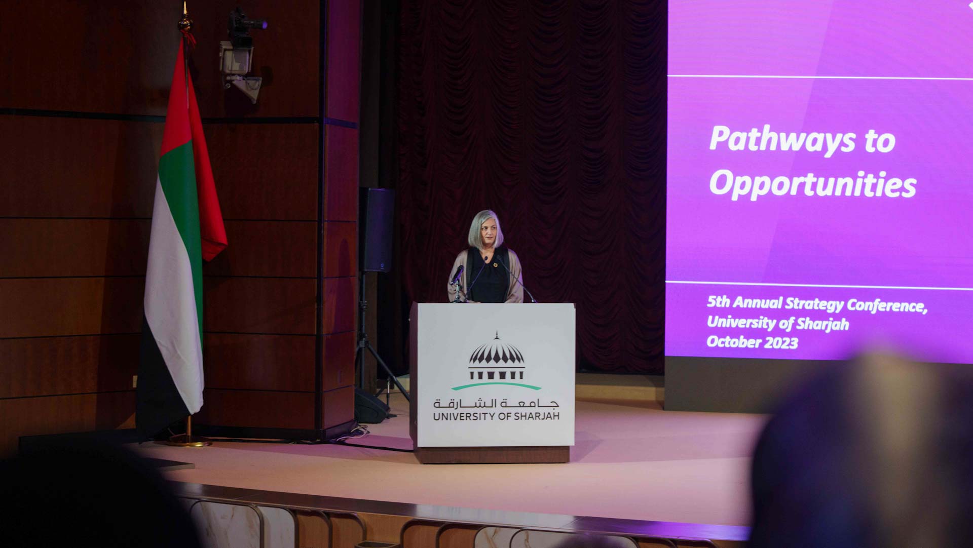 وأوضح حميد مجول النعيمي خلال عرضه أن الهدف من تركيز جامعة الشارقة على التميز في التدريس والبحث العلمي هو خدمة المجتمع، ونشر ثقافة ريادة الأعمال وتطوير الكفاءة الإدارية والجودة وتحسين عملية الأتمتة والرقمنة، موضحاً بأن جامعة الشارقة ستعمل على ترسيخ مكانتها بقوة في مجال الابتكار والبحوث العلمية والتعليم من خلال المواهب الاستثنائية للعلماء الإماراتيين والمعلمين والقادة الأكاديميين وذلك من خلال 5 محاور وهي التميز في استراتيجية التعليم والتعلم، والبحث العلمي المستدام الذي يخدم المجتمع وقطاع الصناعة، وأداء الموظفين، والتعاون المجتمعي وتأثيره، والحرم الجامعي الملائم للمستقبل.