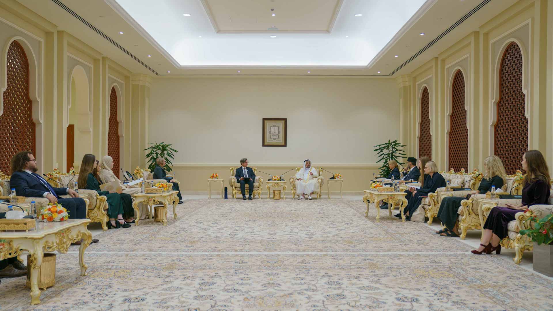 ورحب سموه في بداية اللقاء الذي جرى في دارة الدكتور سلطان القاسمي بالوفد البولندي في دولة الإمارات وفي إمارة الشارقة مشيراً إلى سعادته برؤية الطلبة البولنديين الحريصين على تعلم اللغة العربية، وتطوير معارفهم فيها وهم يزورون الشارقة للاستفادة من البرامج التدريسية، التي يقدمها مجمع اللغة العربية والبرامج الأخرى المقدمة من مختلف المؤسسات الثقافية والعلمية في إمارة الشارقة.