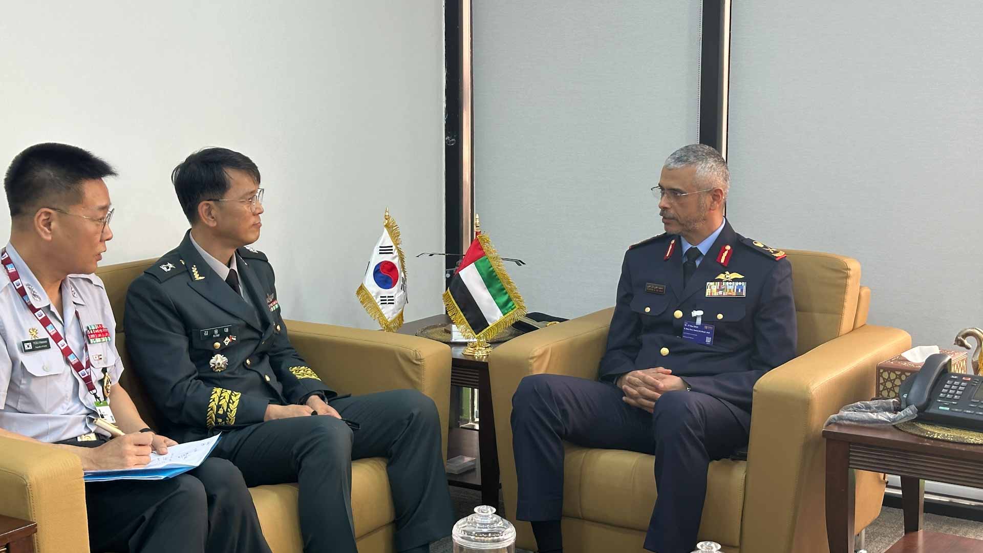 استقبل اللواء الركن سعيد علي آل علي، قائد الطيران المشترك، اليوم الخميس، بمكتبه في معرض دبي للطيران 2023، اللواء كيم يونغداي، المدير العام لبرنامج طائرات الهيليكوبتر بجمهورية كوريا الجنوبية، وبحث معه علاقات التعاون الثنائي وسبل تعزيزها وتطويرها، خاصة في المجالات الدفاعية العسكرية.