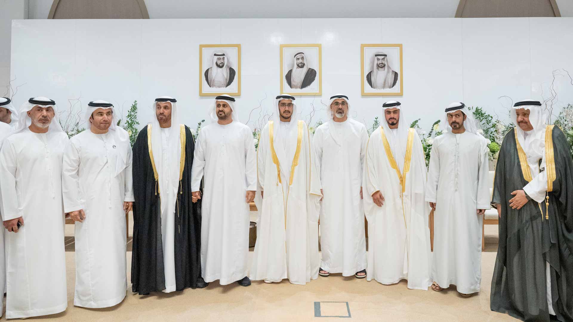 حضر حفل الاستقبال الذي أقيم، اليوم، في فندق إرث في أبوظبي، سموّ الشيخ ذياب بن محمد بن زايد آل نهيان، رئيس مكتب الشؤون التنموية وأسر الشهداء في ديوان الرئاسة، ومعالي الشيخ خليفة بن طحنون بن محمد آل نهيان، رئيس ديوان ولي عهد أبوظبي، وعددٌ من كبار المسؤولين وأقارب العرسان وجمعٌ من المدعوّين.