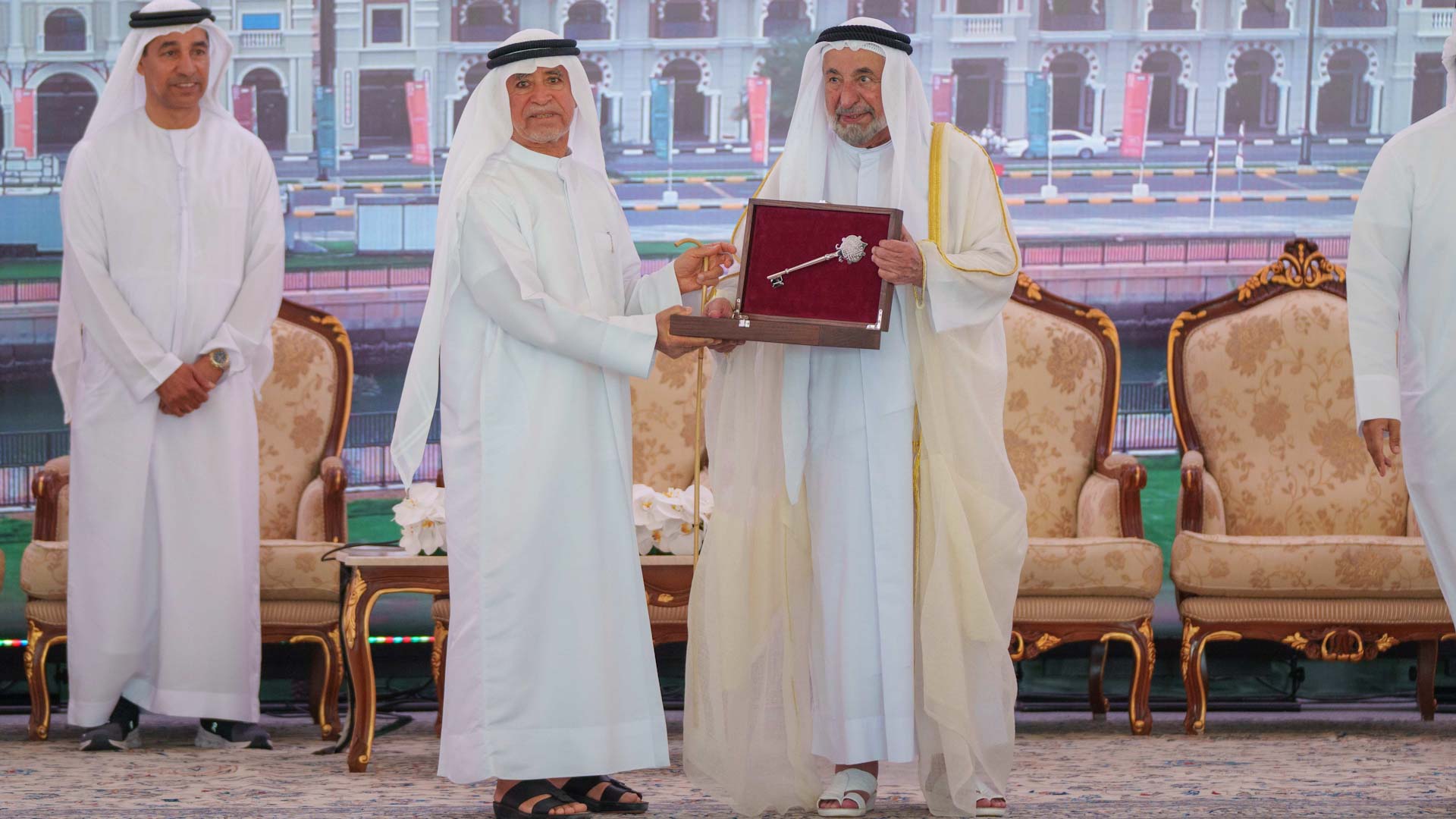 وشاهد سموه خلال حفل التدشين مادة مرئية حول مراحل تنفيذ مشروع البنايات التجارية، وأهم العناصر الفنية والمعمارية التي نفذت بها لتضفي طابعاً مميزاً للواجهة المطلة على كورنيش دبا الحصن، تفضل بعدها سموه بتسليم ملاك البنايات سندات الملكية الخاصة بهم، مقدمين شكرهم وتقديرهم لسموه.