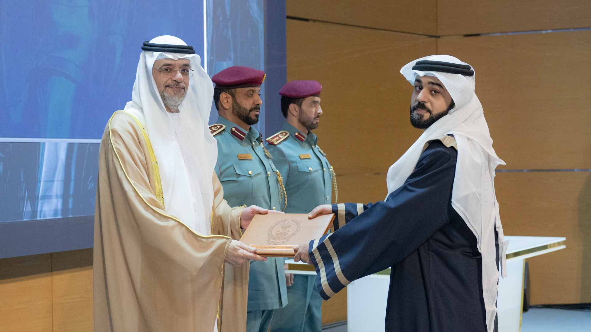 بعدها تفضل سمو ولي عهد الشارقة بتسليم الشهادات للخريجين البالغ عددهم (45) خريجاً وخريجة، منهم 10 حاصلين على درجة الدكتوراه، و35 حاصلين على درجة الماجستير، متمنياً سموه لهم التوفيق والنجاح في حياتهم المستقبلية.